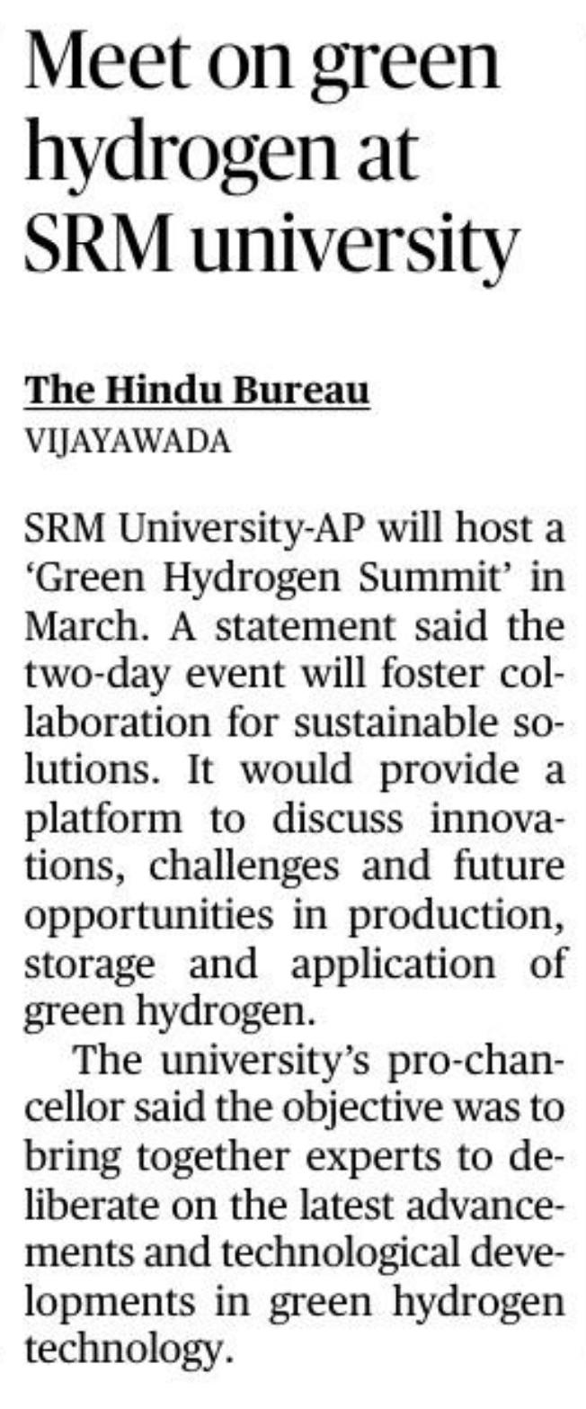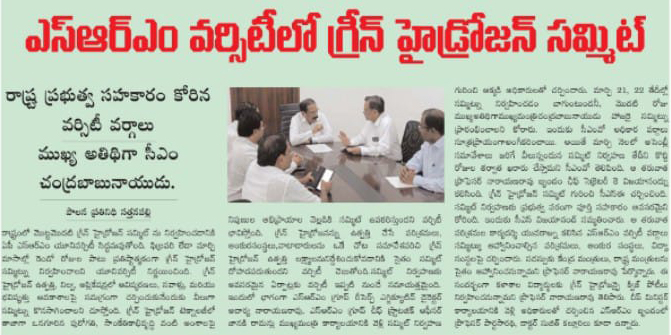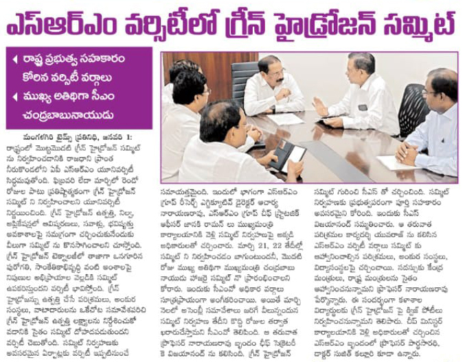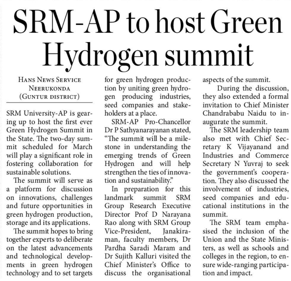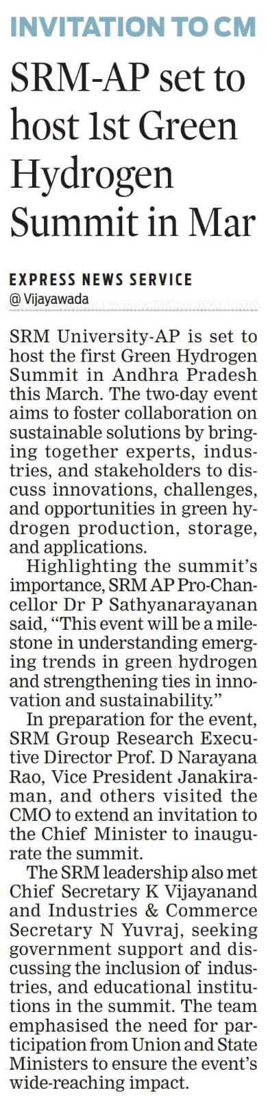 SRM AP to Host State’s First-ever Green Hydrogen Summit