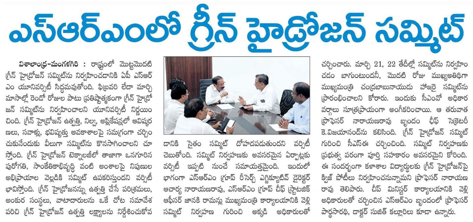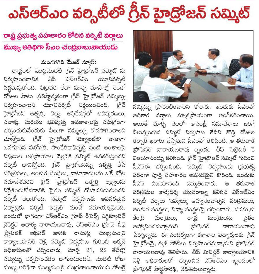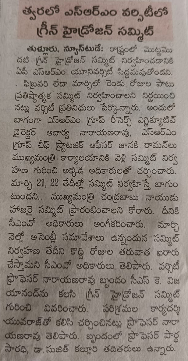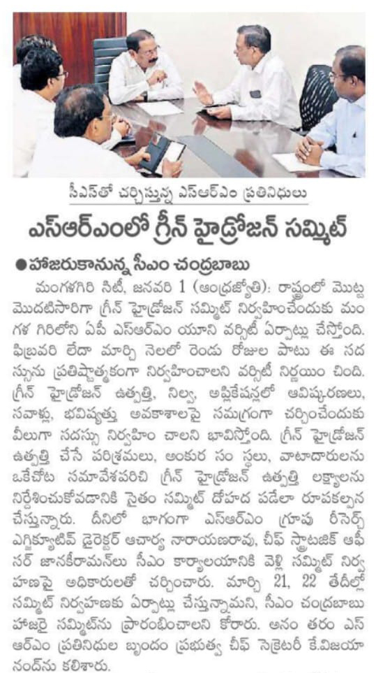 SRM AP to Host State’s First-ever Green Hydrogen Summit