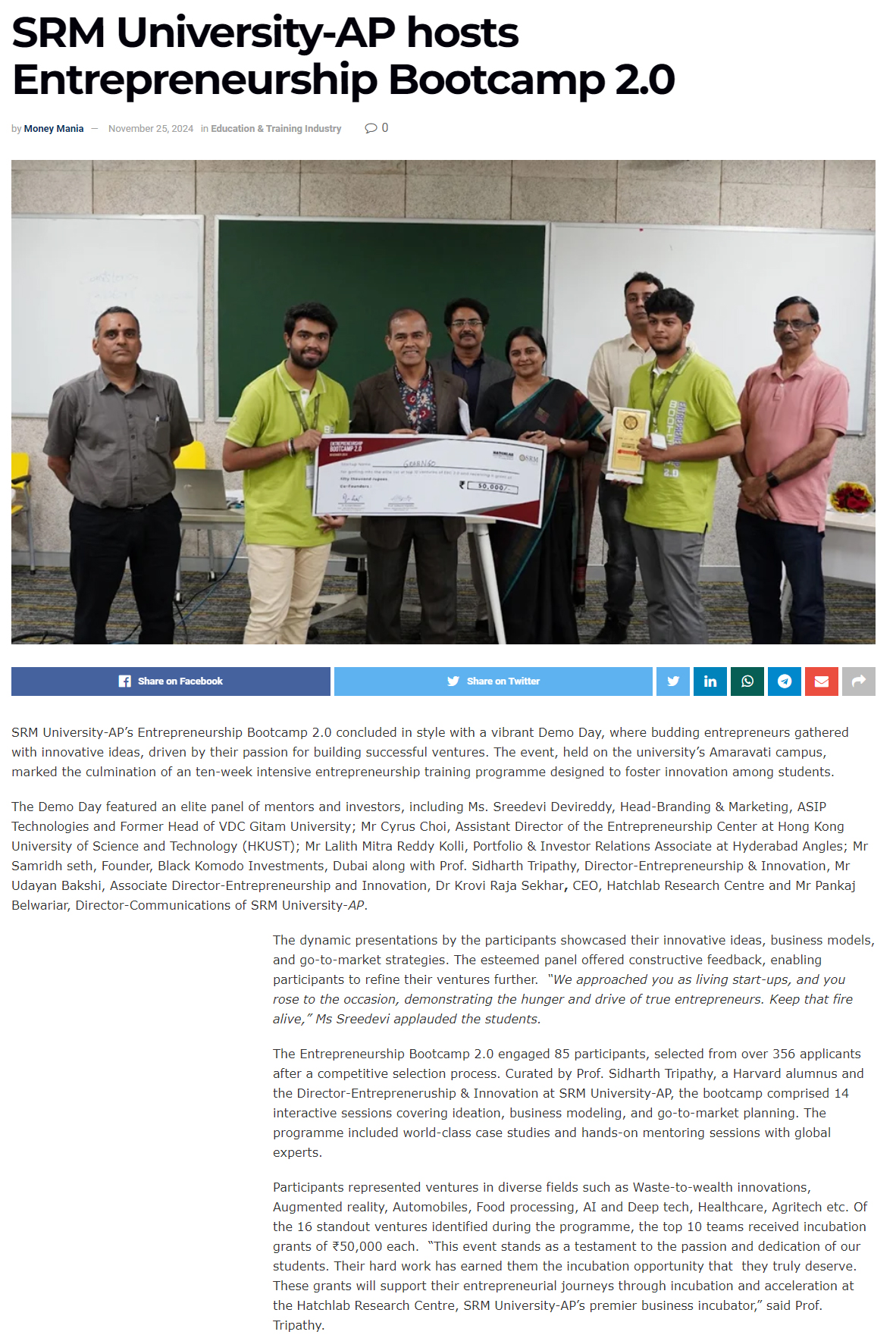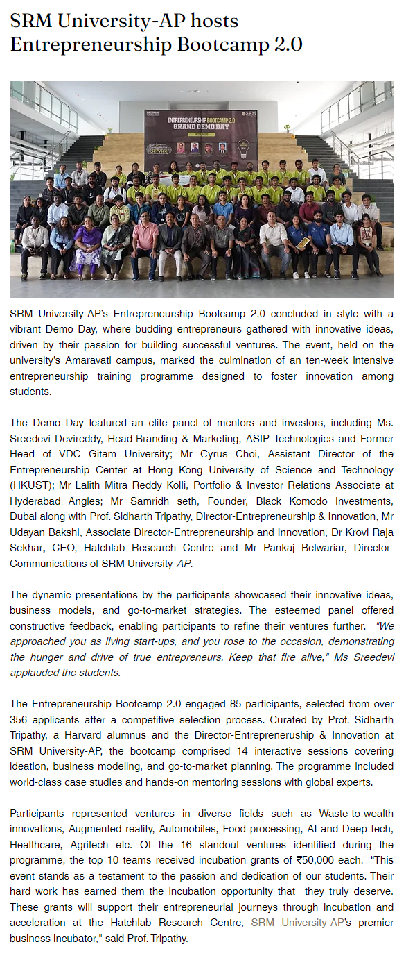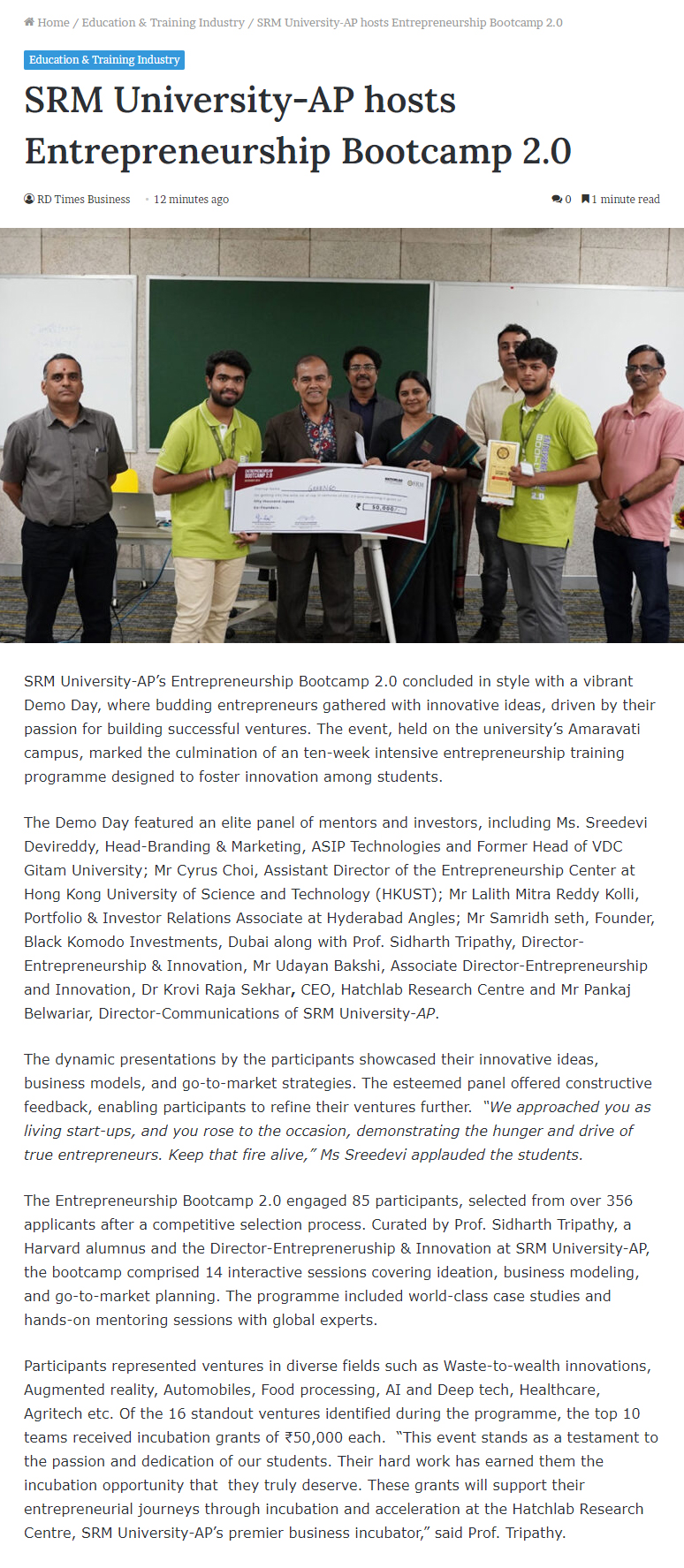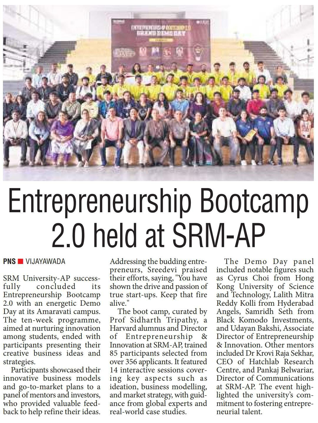 SRM University-AP hosts Entrepreneurship Bootcamp 2.0