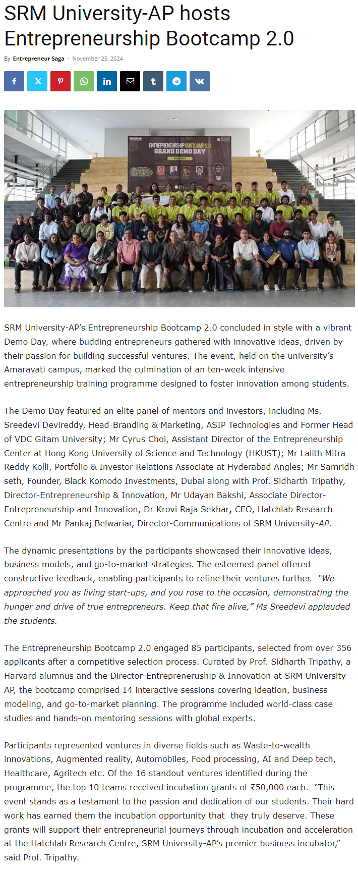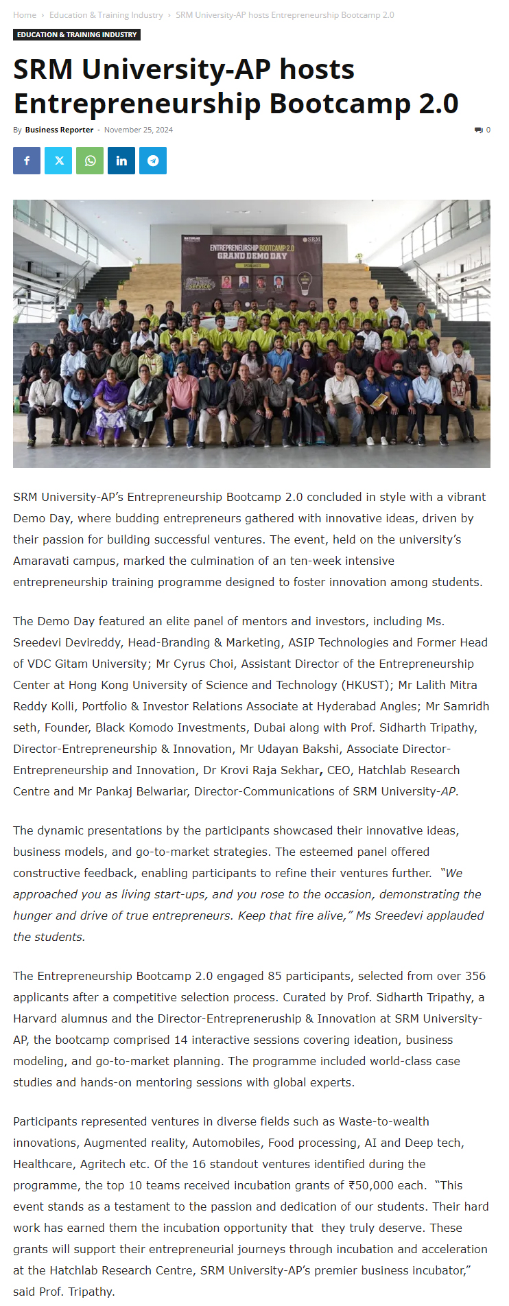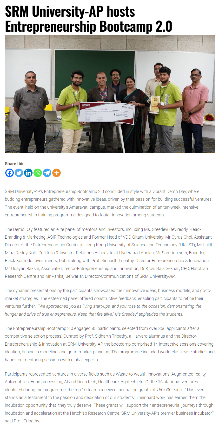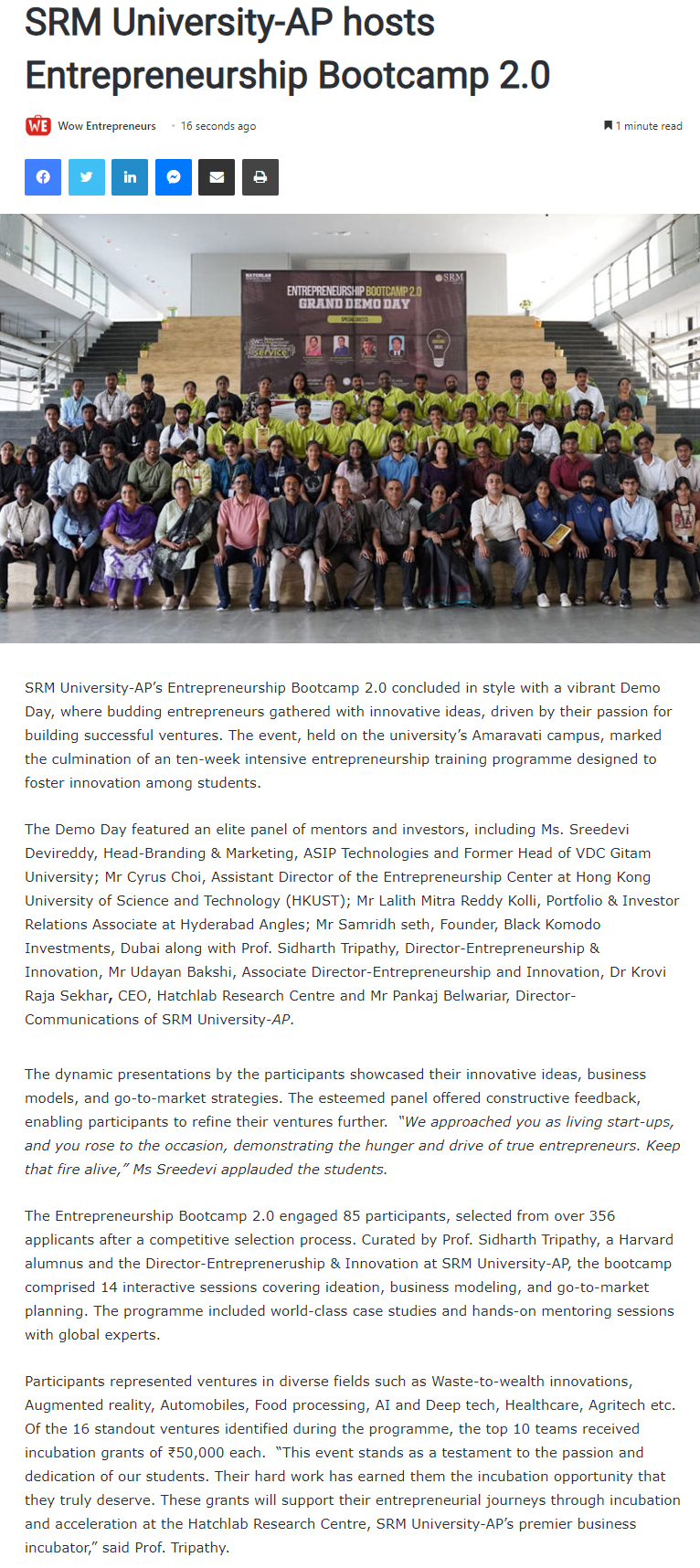 SRM University-AP hosts Entrepreneurship Bootcamp 2.0