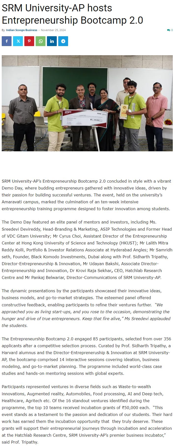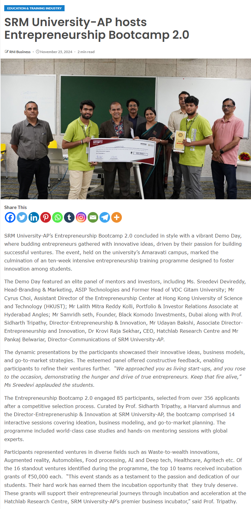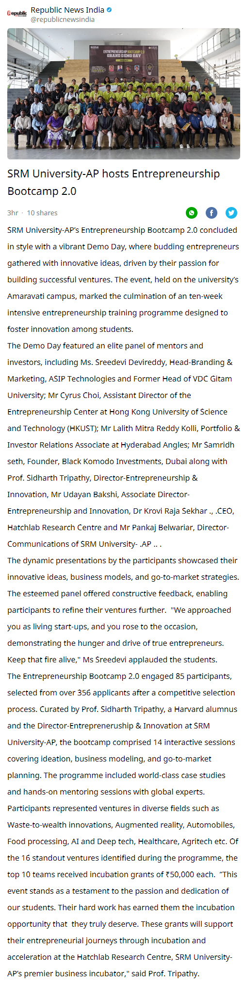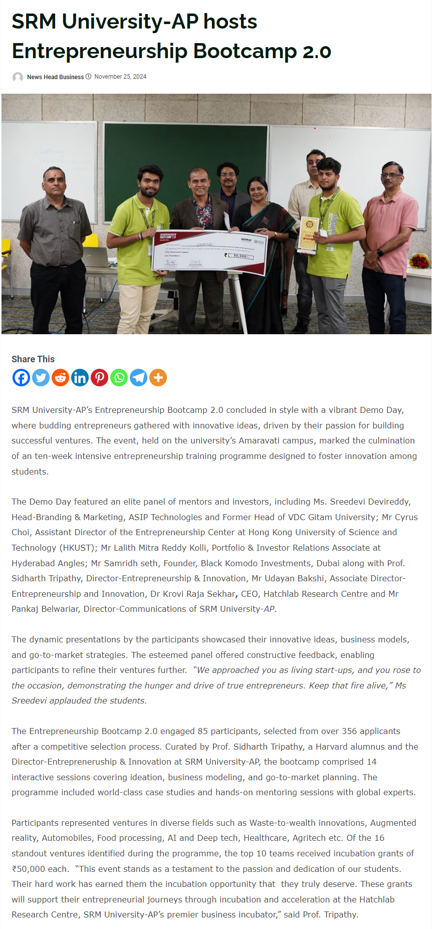 SRM University-AP hosts Entrepreneurship Bootcamp 2.0