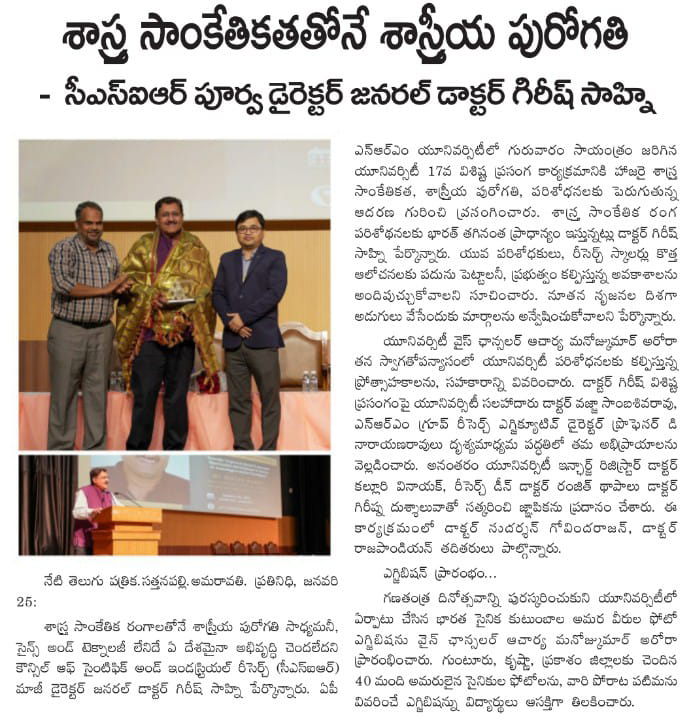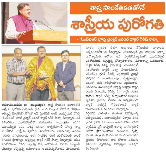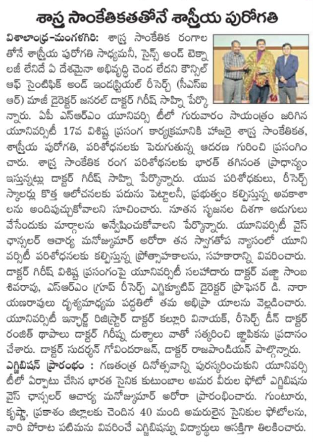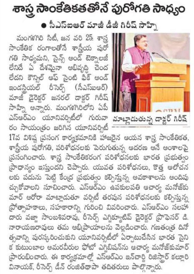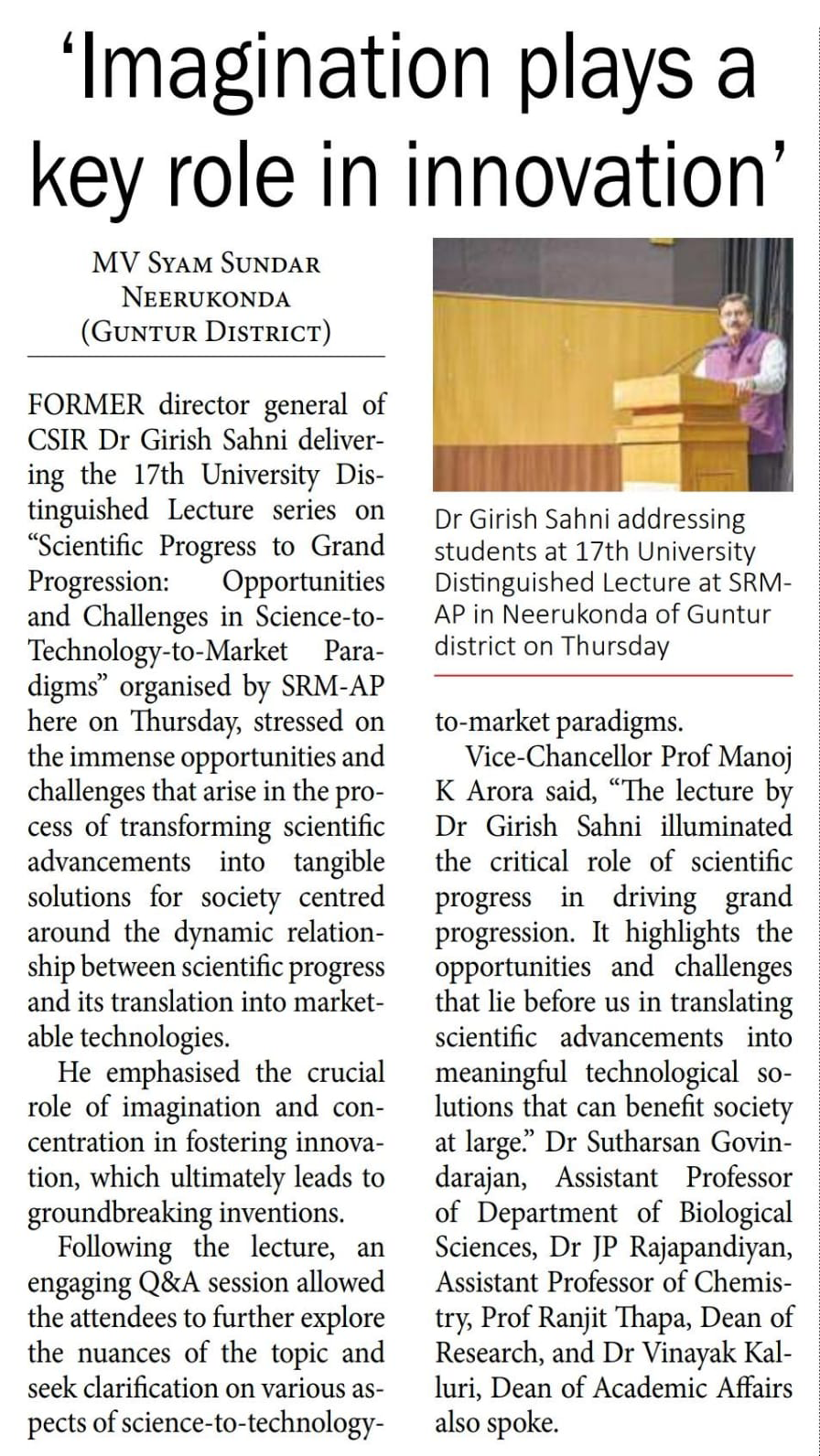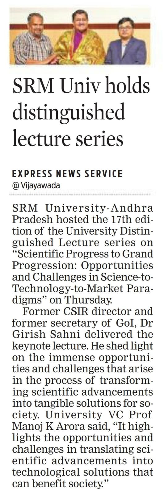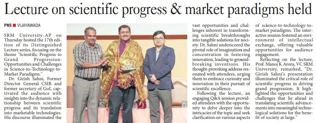 SRM University-AP Hosts Lecture on Scientific Progress and Market Paradigms by Dr Girish Sahni