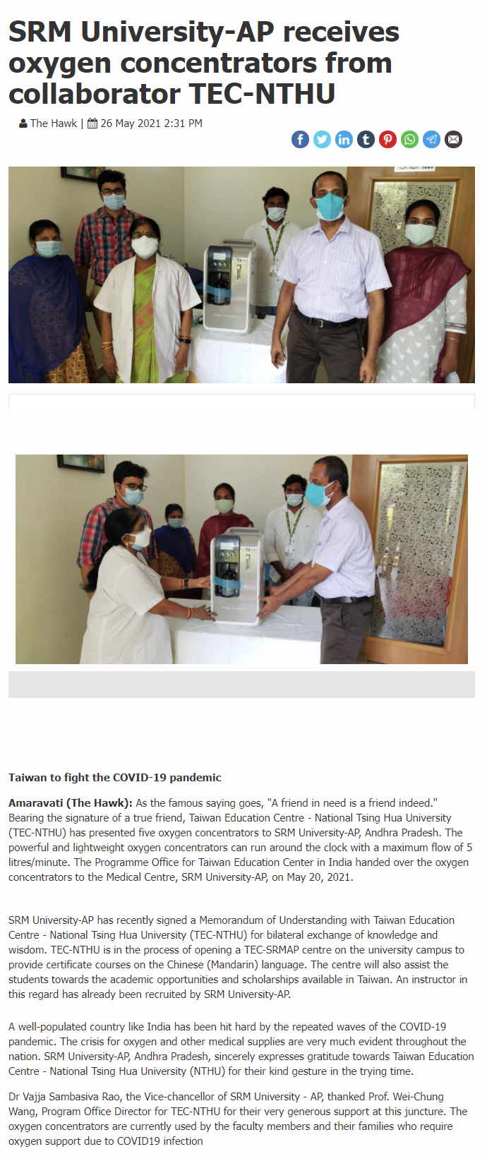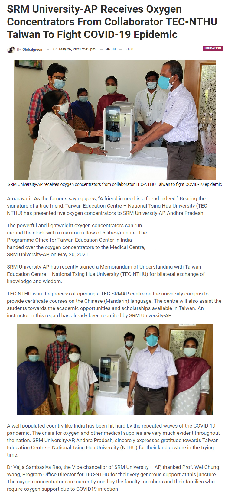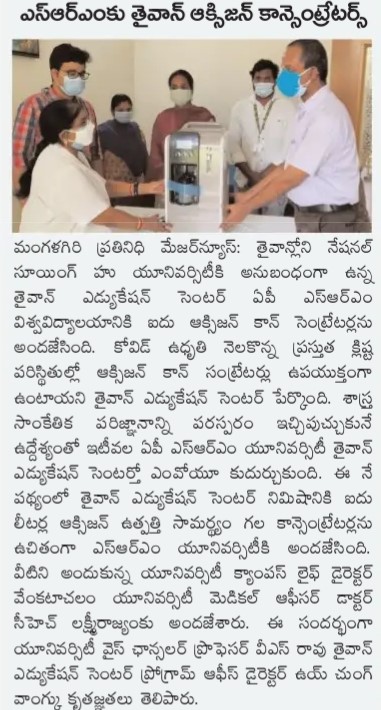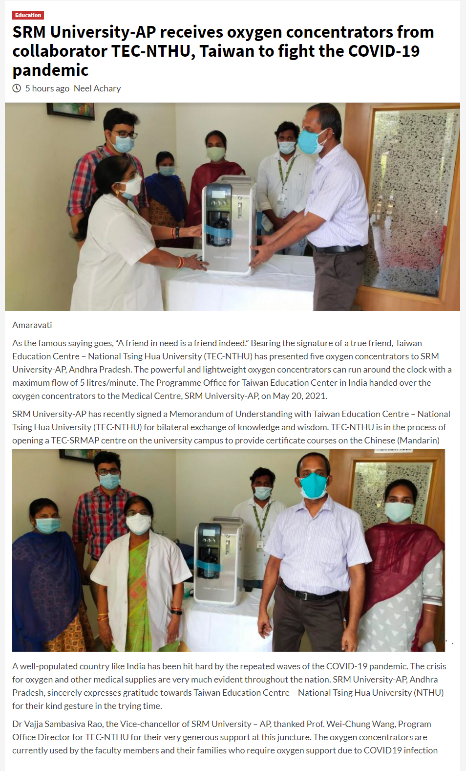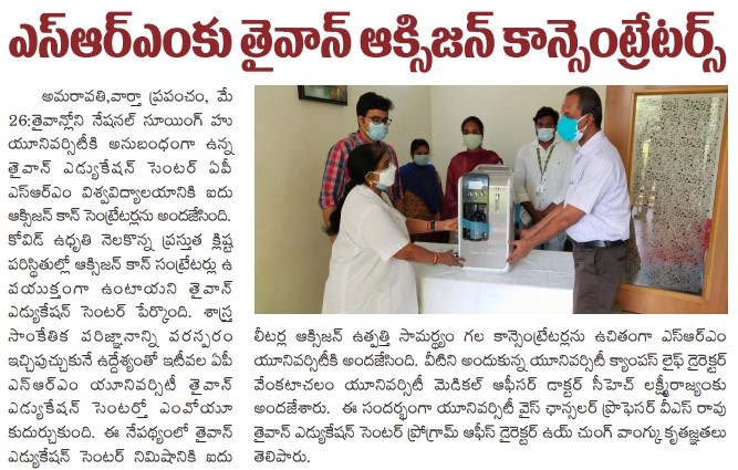 SRM University-AP receives oxygen concentrators from collaborator TEC-NTHU