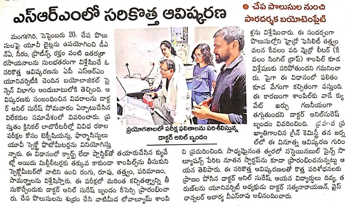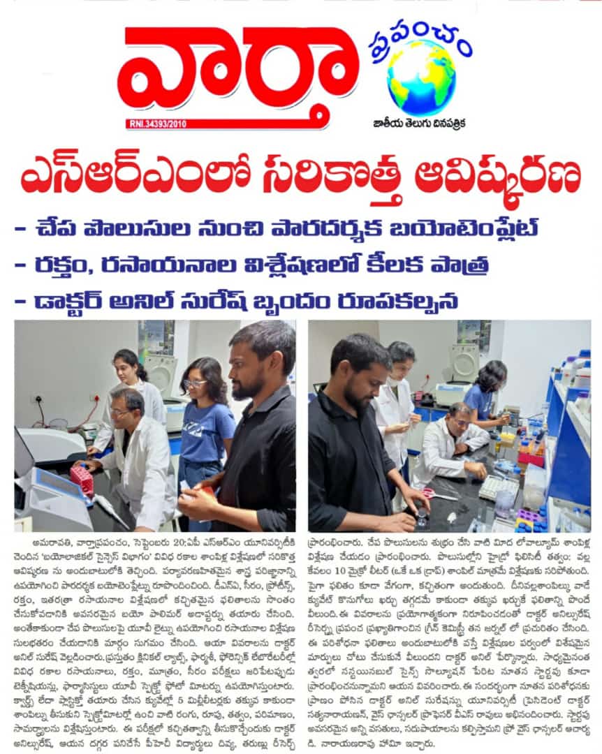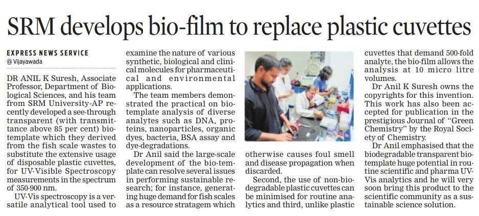 SRMAP develops Sustainable Transparent “Biofilm” to replace Plastic Cuvettes