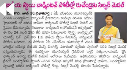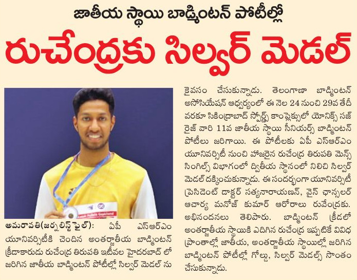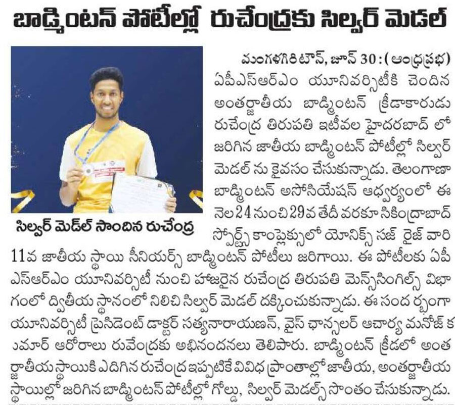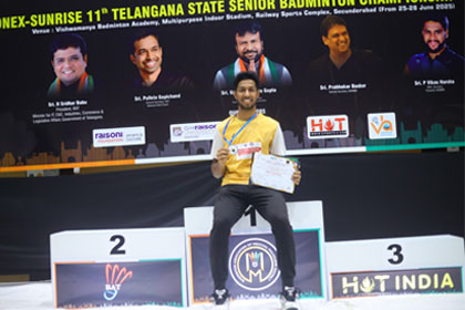 SRMAP’s Rushendra wins silver at Telangana State Badminton C’ship