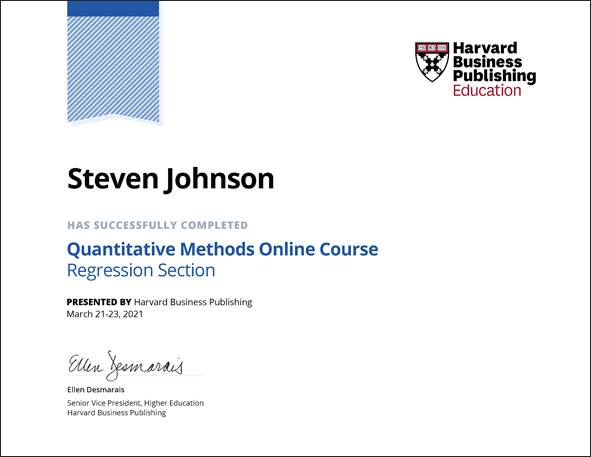 - The use of Harvard online courses. MBA students would be expected to take six online courses from Harvard. This would give them cutting edge knowledge. On successfully passing the course, they would also get a certificate from Harvard.