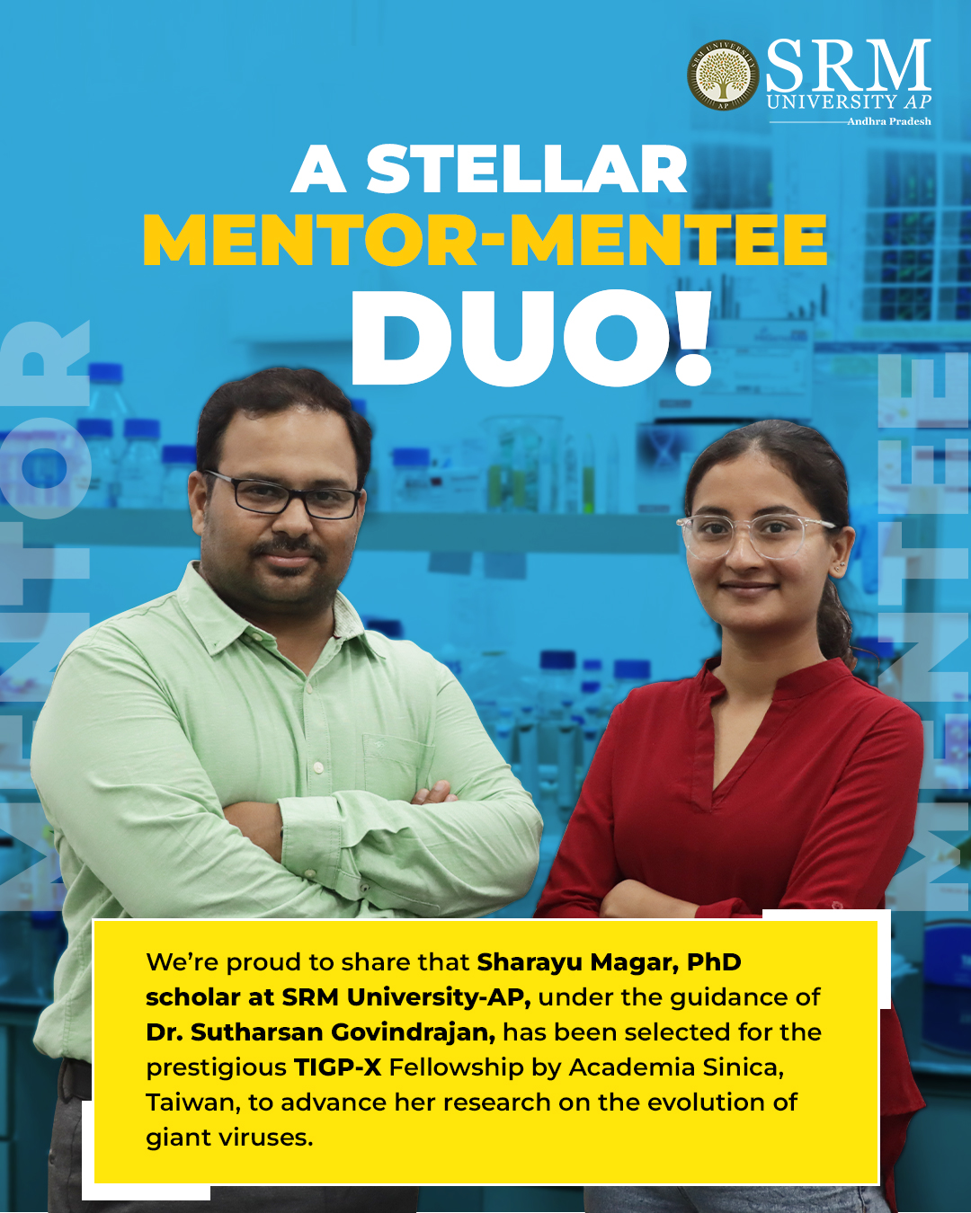 Barath Sivaraj, a research scholar from the Department of Biological Sciences at SRM University-AP has achieved an outstanding feat by receiving the DST INSPIRE Fellowship, a highly regarded programme sponsored and overseen by the Department of Science & Technology.