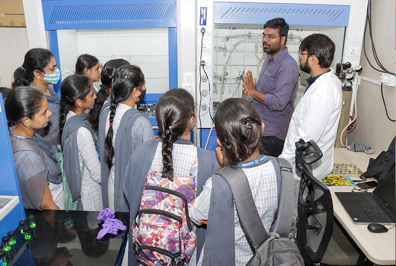SRM AP is known for its resources and facilities for pioneering research with the support of global leaders and SME’s while sticking to compliance and international regulations. Obtaining research excellence in every field of study has been a mission of the university. Recently, 50 MSc students from the Department of Chemistry, KBN College, Vijayawada, visited our university to explore the analytical and research facilities available here.