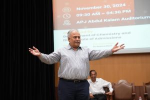 Continue reading →On November 30, 2024, the Department of Chemistry, in collaboration with the Directorate of Admissions, hosted ChemZeal 3, a flagship event that showcased the ever-expanding scope of chemistry in today’s world. The event was graced by prominent personalities, including the Chief Guest, Prof. Vijayamohanan Pillai, Dean of Research & Development at IISER Tirupati, and Dr Veerababu, Director of Cathode, GODI India Pvt. Ltd., Hyderabad, who served as the resource person.