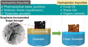 1. The adsorption/photodegradation-assisted quick and efficient removal of next generation advanced pollutants such as microplastic, pesticides, pharmaceutical waste, etc. by hydrophobic carbon aerogel and their doped and functionalized versions.