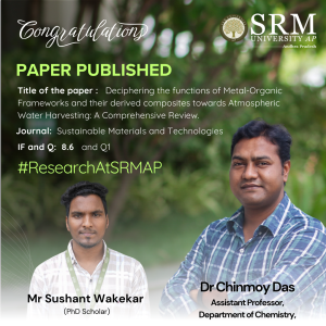 As water scarcity becomes an increasingly pressing issue, innovative solutions like atmospheric water harvesting (AWH) are being explored to provide sustainable access to fresh water. Dr Chinmoy Das, Assistant Professor from the Department of Chemistry and his research scholar Mr Sushant Wakekar have in their research paper titled, “Deciphering the functions of Metal-Organic Frameworks and their derived composites towards Atmospheric Water Harvesting: A comprehensive Review” analysed the crucial role of metal-organic frameworks (MOFs) and their composites in enhancing the efficiency of AWH systems.