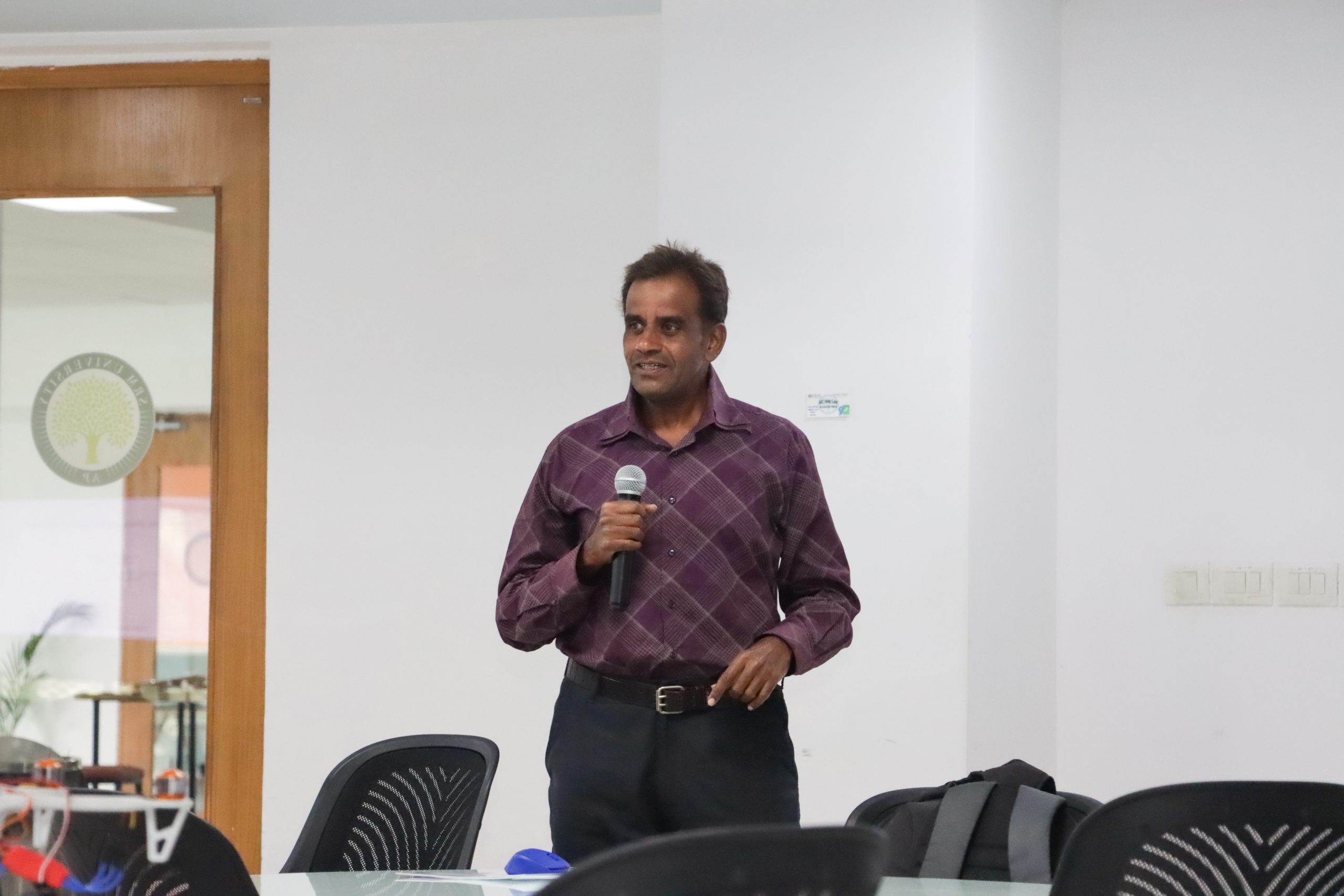 A thought-provoking panel discussion explored the adoption of drone technology and the challenges faced across academic, industrial, and policy domains. Participants then engaged with teaching aids developed by SRM AP’s Centre for Drone Technology, gaining a hands-on understanding of quadcopter components.