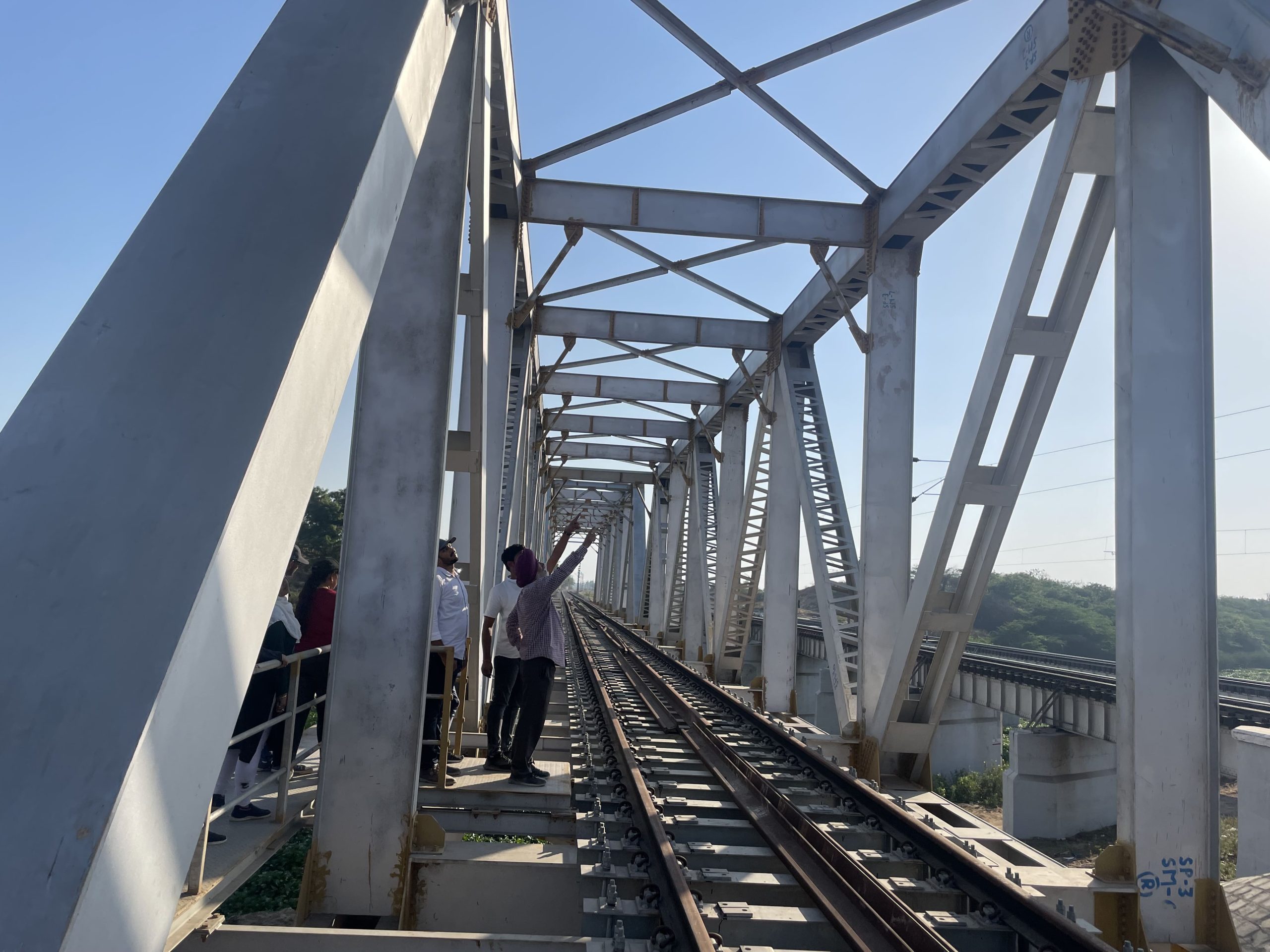 The Department of Civil Engineering has organised the third industrial visit to the ongoing railway project, “Construction works of 3rd railway line between Vijayawada and Gudur”. The tour was arranged with the support of Mr Basha, AGM, Rail Vikas Nigam Limited (RVNL) and coordinated by Mr Lakwanth Singh Khalsa, Project Manager, Systra, India. The field visit was guided by engineers from Systra and GR Infra (GRIL) working on respective sites and coordinated by the faculty.
