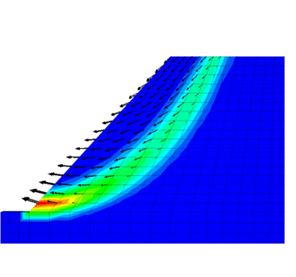 FLAC/Slope can simulate stability problems under a wide variety of slope conditions, including arbitrary slope geometries, multiple layers, pore pressure conditions, heterogeneous soil properties, and surface loading.