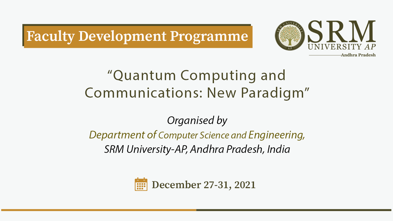 Continue reading →Quantum computing is one of the most significant scientific breakthroughs of the century. The Computer Science and Engineering Department at SRM university-AP is organising an online Faculty Development Programme (FDP) on the topic “Quantum Computing and Communications: New Paradigm” from December 27 to 31, 2021 for scholars from various reputed universities and institutions. The programme organised jointly with CDAC, Bengaluru, will be inaugurated on December 27, 2021, at 9.30 am.
