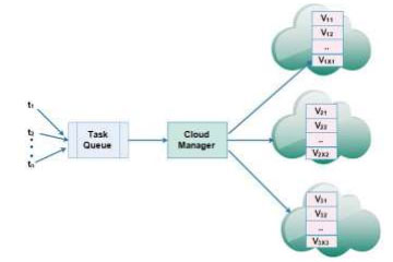 Example of Direct Acyclic Graph (DAG)with four TasksIn recent years, the growth rate of Cloud computing technology is exponentially, mainly for its extraordinary services with expanding computation power, the possibility of massive storage and all other services with the maintained quality of services (QoS). The task allocation is one of the best solutions to improve different performance parameters in the cloud, but when multiple heterogeneous clouds come into the picture, the allocation problem becomes more challenging. This research work proposed a resource-based task allocation algorithm. The same is implemented and analysed to understand the improved performance of the heterogeneous multi-cloud network. The proposed task allocation algorithm (Energy-aware Task Allocation in Multi-Cloud Networks (ETAMCN)) minimizes the overall energy consumption and also reduces the makespan. The results show that the makespan is approximately overlapped for different tasks and does not show a significant difference. However, the average energy consumption improved through ETAMCN is approximately 14%, 6.3%, and 2.8% in opposed to the random allocation algorithm, Cloud Z-Score Normalization (CZSN) algorithm, and multi-objective scheduling algorithm with Fuzzy resource utilization (FR-MOS), respectively. An observation of the average SLA-violation of ETAMCN for different scenarios is performed.