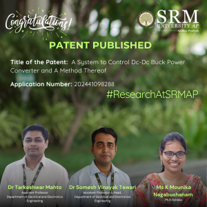 Continue reading →The patent titled “A System to Control Dc-Dc Buck Power Converter And A Method Thereof” by research scholar K Mounika Nagabushanam, and Assistant Professors, Dr Somesh Vinayak Tewari, and Dr Tarkeshwar Mahto with application no: 202441098288 presents an innovative approach to managing power conversion in renewable energy systems extending its applications in electric vehicles and microgrids, highlighting the importance of robust power control in advancing sustainable energy technologies.