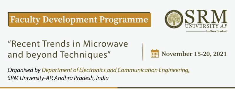 Continue reading →SRM University-AP, is pleased to announce that the Department of Electronics and Communications Engineering is bringing forth a Faculty Development Programme (FDP) on “Recent Trends in Microwave and Beyond Techniques”. The duration of the program duration is November 15, 2021 to November 20, 2021. The sessions are scheduled in the afternoon from 2:00 to 5:00 p.m., Tuesday to Friday and in Forenoon from 10:00 a.m. to 12:00 p.m. on Saturday.