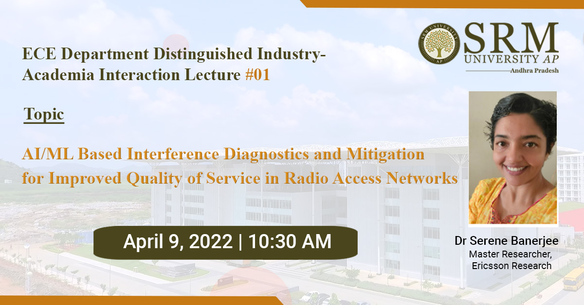 The Department of Electronics and Communication Engineering is hosting the first instalment of the Distinguished Industry-Academia Interaction Lecture in the ECE DDIAL series. The event is scheduled on April 9, 2022, at 10.30 am. Dr. Serene Banerjee, Master Researcher, Ericsson Research, will be the keynote speaker. She will deliver a talk on the topic ‘AI/ML Based Interference Diagnostics and Mitigation for Improved Quality of Service in Radio Access Networks’.