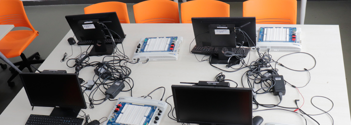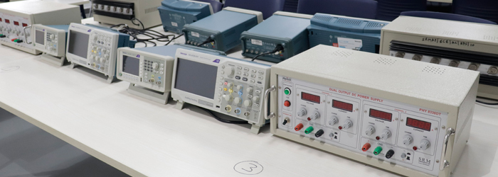 Electronics Laboratory is one of our state-of-the-art laboratories, specially designed for electronic circuits related courses. Our modernized laboratory has 35 sets of NI ELVIS boards connected with 35 different computers. We make sure that every student gets to understand and analyse the laboratory experiments in the best possible way. In this lab, we use highly sophisticated NI ELVIS trainer boards to demonstrate the concepts taught to the students. Using these boards, students can explore fundamental topics and apply them for quickly designing practical circuits based on ICs and other electronic components. NI ELVIS boards are connected to a LabView software so that students can experience software and hardware simulations for the designed circuit. Currently, this laboratory is being used for basic electronics and digital electronics courses. Our students perform experiments like clipper-clamper, rectifiers, multiplexers, counters, static RAM, and many more in this laboratory.