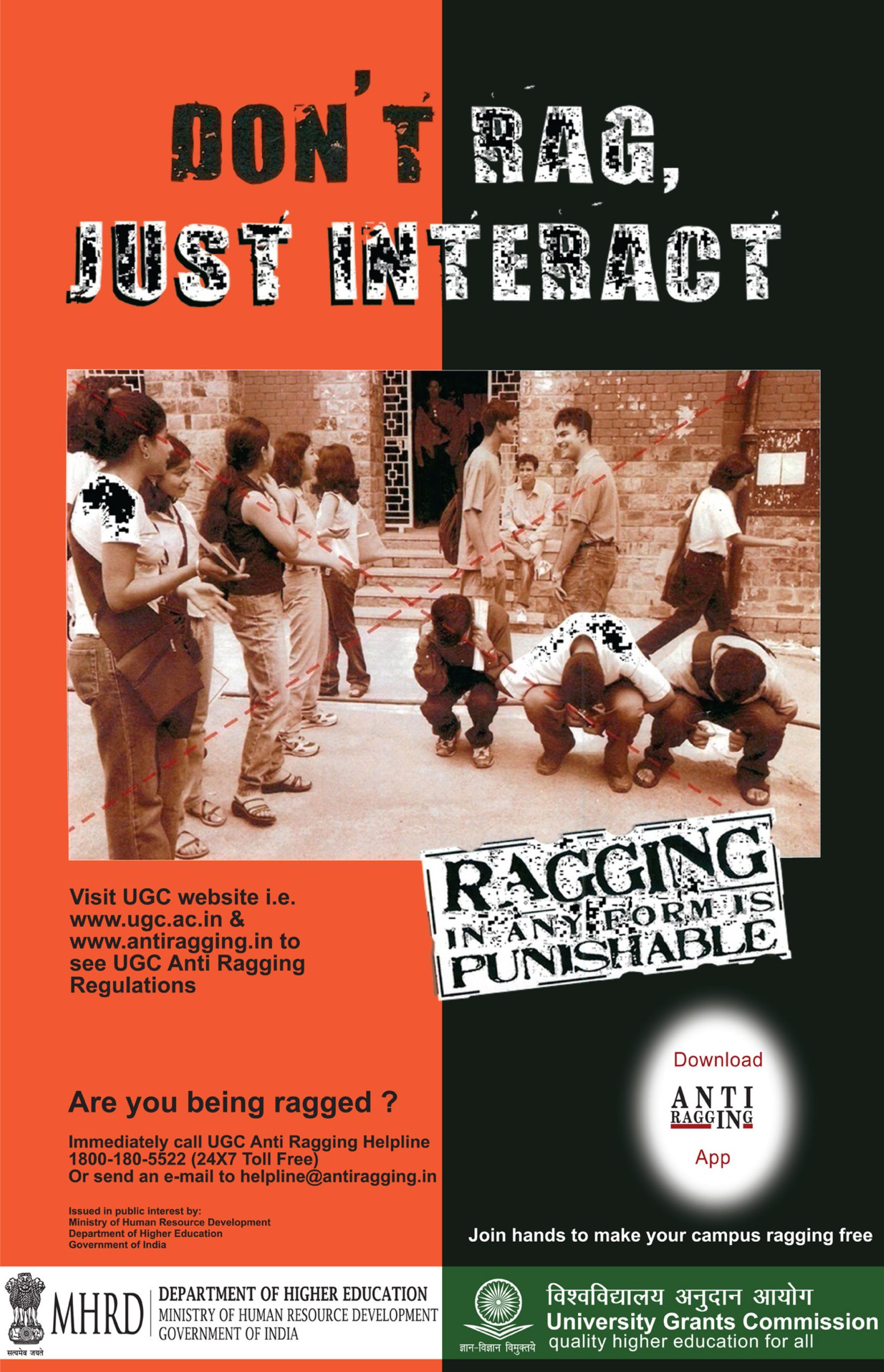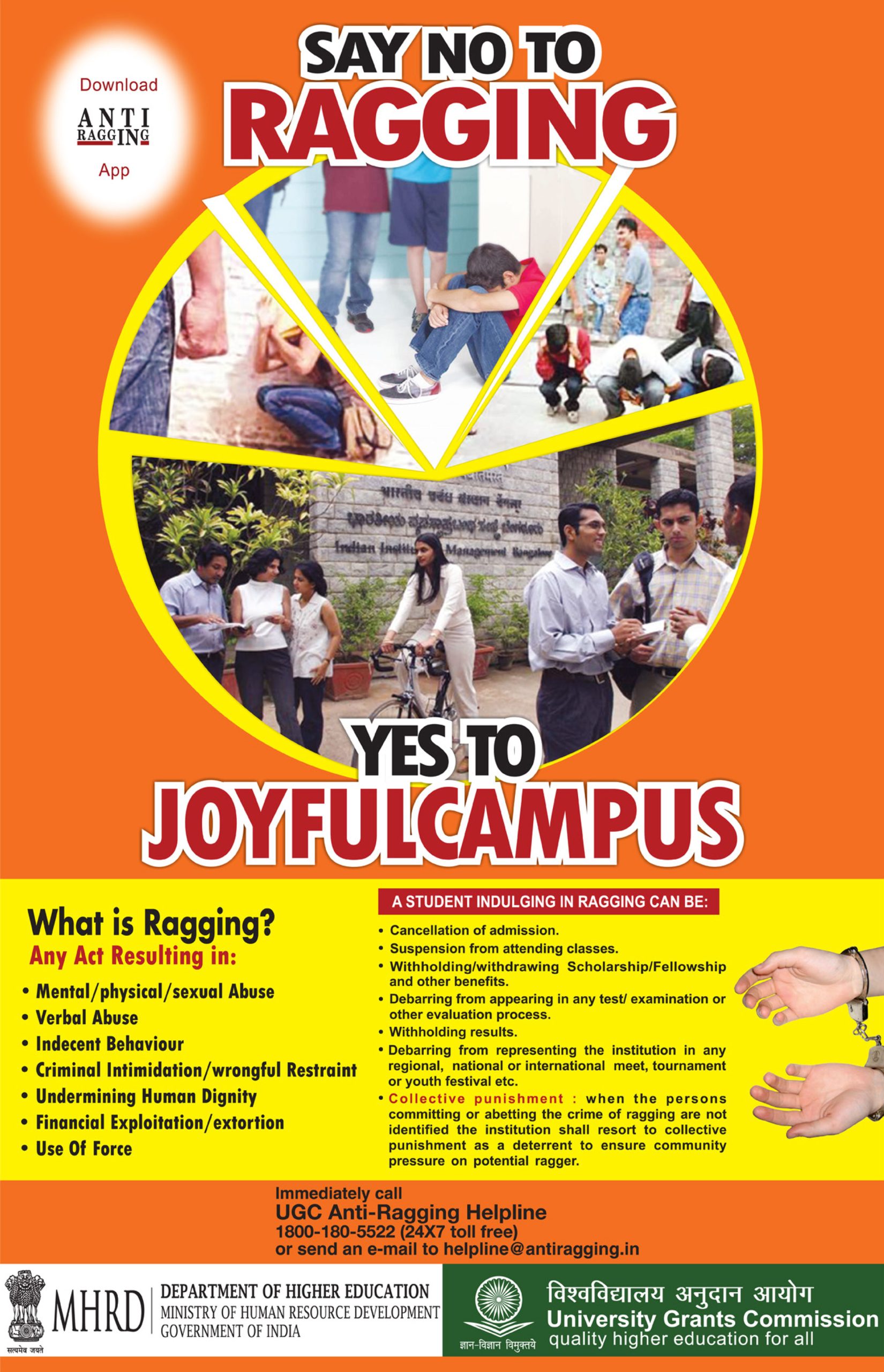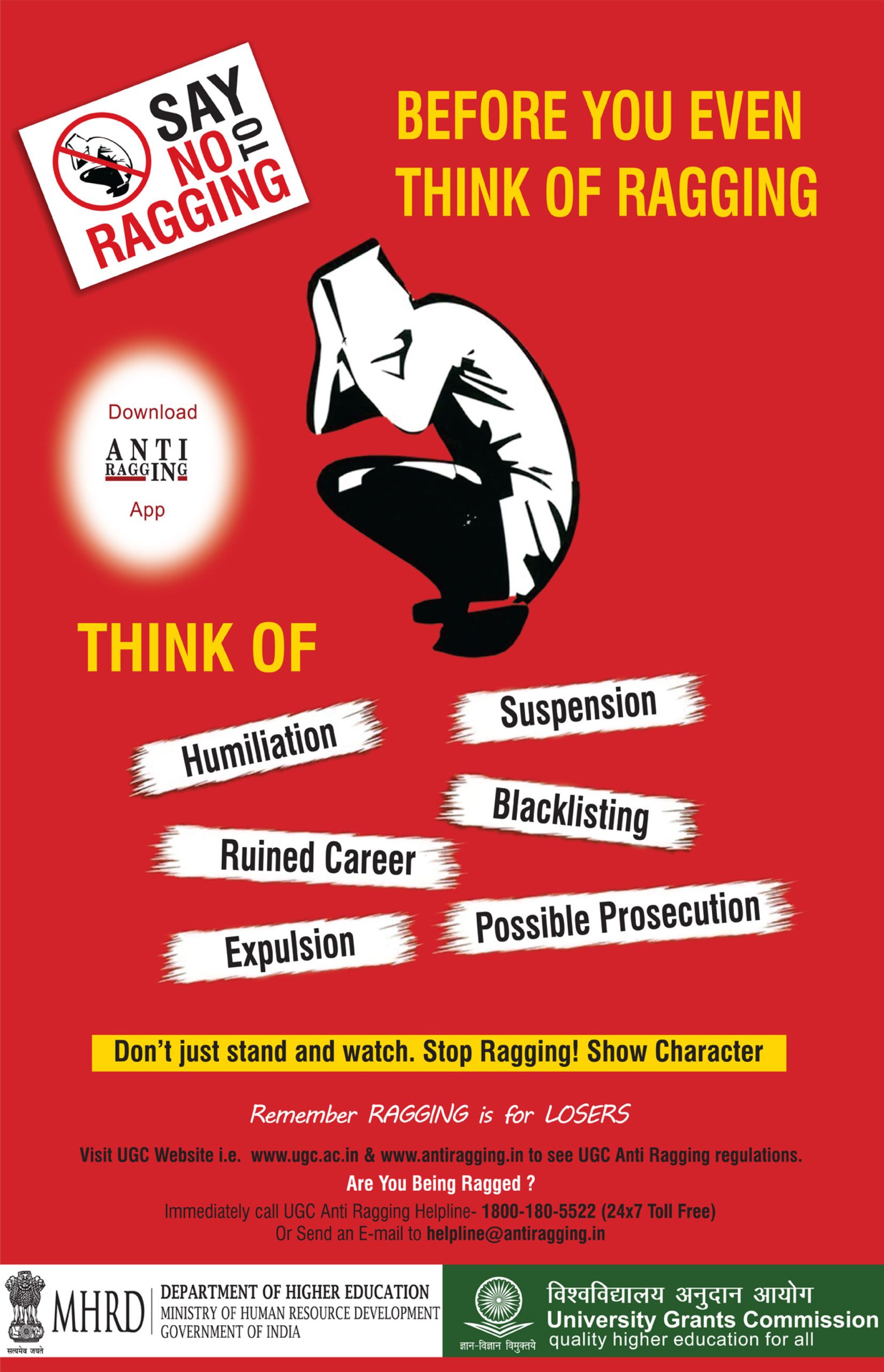 Ragging is a crime which destroys physical and emotional confidence, and it leads to an increase in anxiety and stress among students.