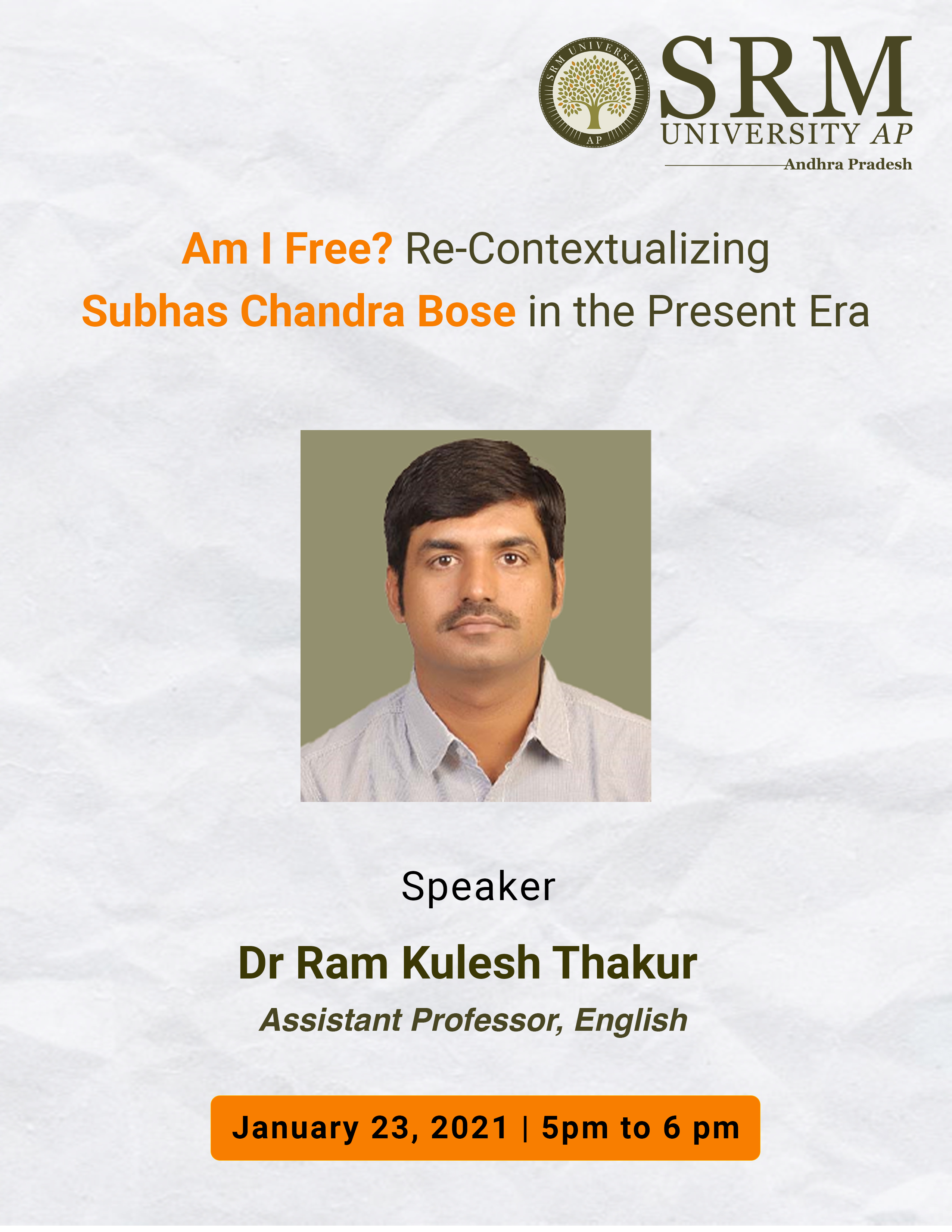 Department of Student Affairs is organising a webinar on the birthday of Netaji Subhas Chandra Bose to honour and recall his beliefs on freedom and Nation. Dr Ram Kulesh Thakur will be talking on “Am I Free? Re-Contextualising Subhas Chandra Bose in the Present Era.” Dr Thakur is an Assistant Professor in the Department of English. Join the webinar on January 23 at 5 pm with Dr Ram Kulesh Thakur, who will be shedding some light on this much-debated topic.