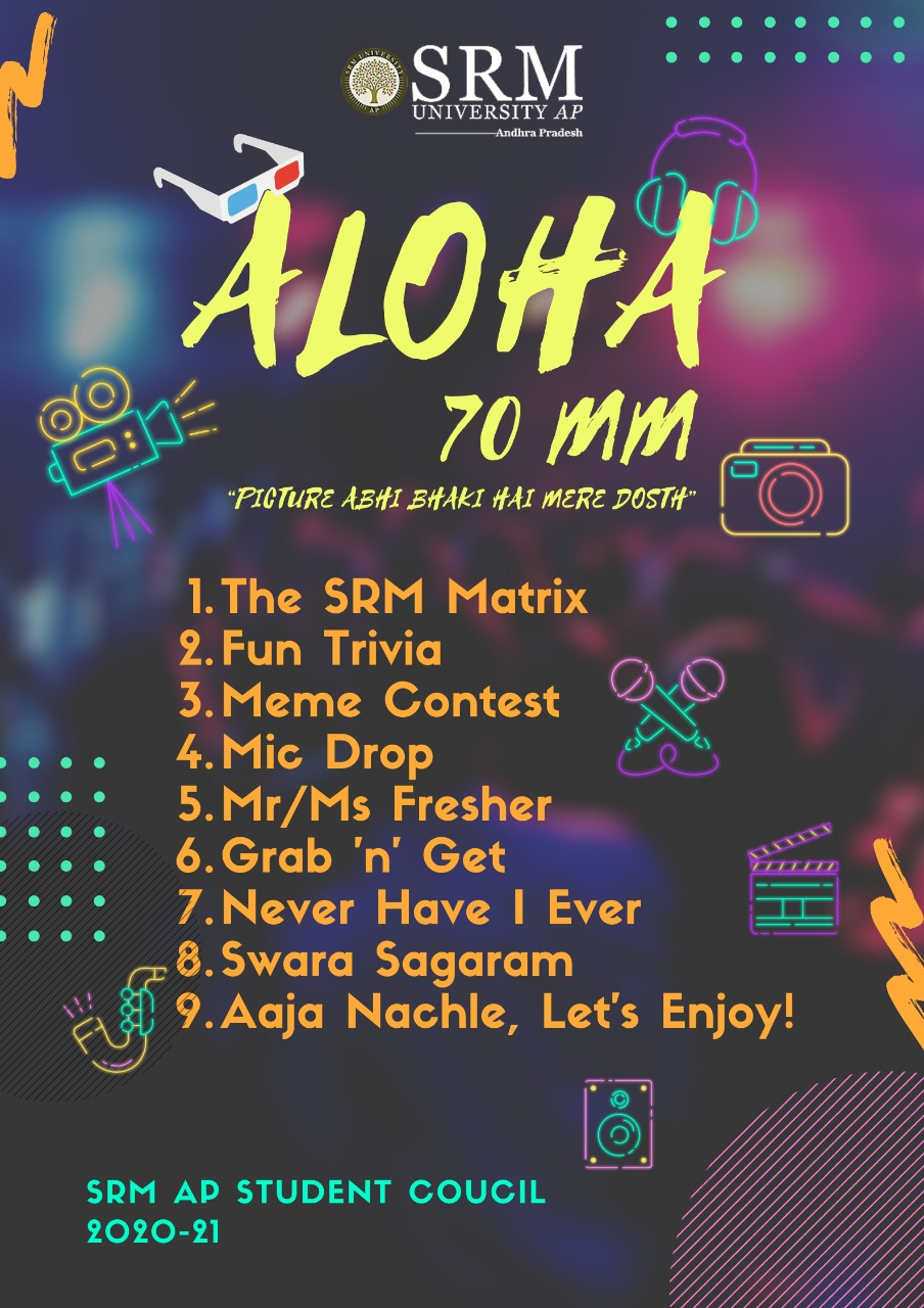 SRM University-AP, Andhra Pradesh presents Aloha, a virtual welcome to the freshers on this erudite journey. Though the pandemic impeded the young students to attend the classes and enjoy the conducive campus of SRM University-AP, an array of performances, contests, and fun awaits them on February 13, 2021, at 10.30 AM. Students are encouraged to unleash their talent in the gamut of competitions hosted by the seniors to celebrate the beginning of the journey of their juniors at SRM University-AP.