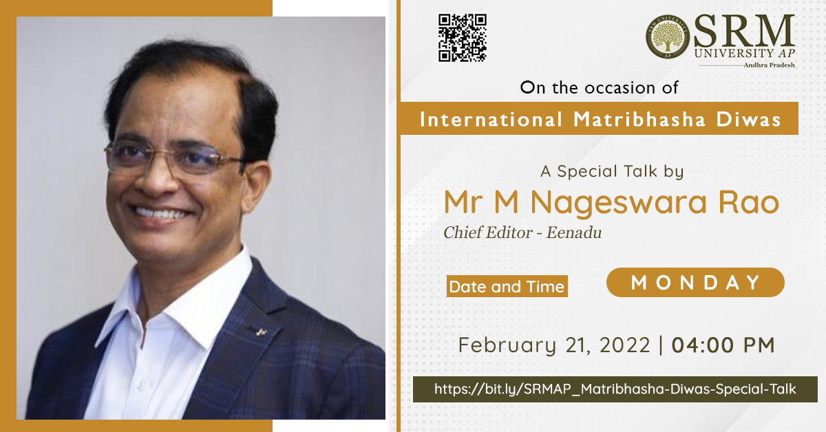 Mother tongue is our association with fond memories and a defining factor in our lives. It keeps us connected with our roots. This year, the Department of Student Affairs is inviting the esteemed Mr M Nageswara Rao, Chief-Editor of Eenadu to address the students on International Matribhasha Diwas.