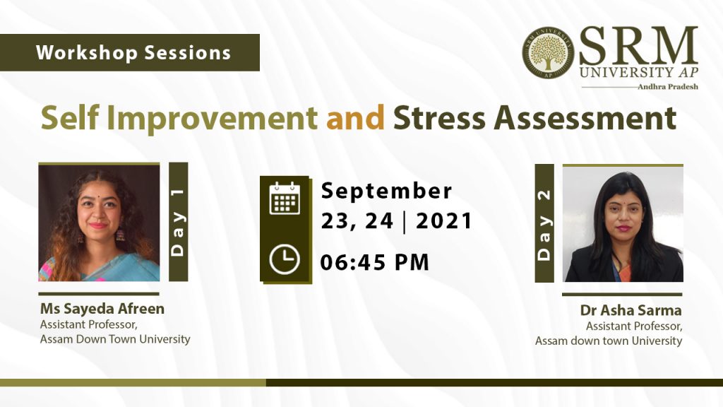 A two-day workshop on Self Improvement and Stress Assessment is being organised by the Department of Student Affairs on September 23 and 24, 2021, at 6.45 pm. Dr Sayeda Afreen, Assistant Professor, Faculty of Humanities and Social Sciences, Assam Down Town University, Guwahati, Assam, will speak on September 23 on “Self Improvement”. The following day will feature Dr Asha Sarma, Assistant Professor (Programme Coordinator of Psychology), Faculty of Humanities and Social Sciences, Assam Down Town University, Guwahati, Assam, who will speak on “Stress Assessment”.