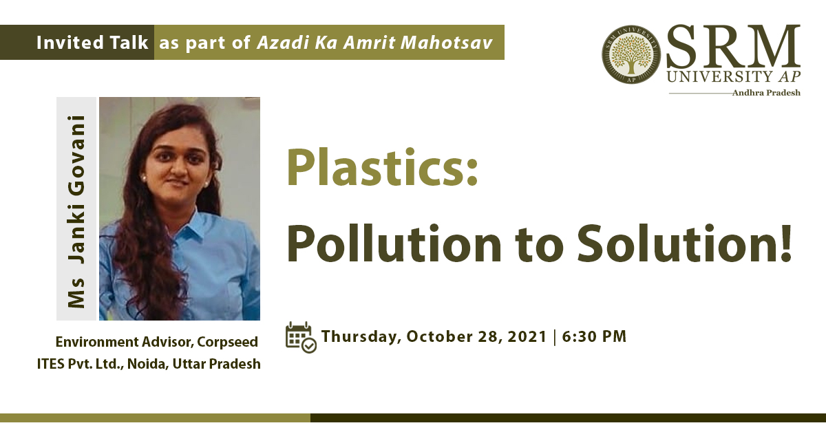 As a part of the “Azadi ka Amrit Mahotsav” campaign, the Department of Students’ Affairs at SRM University-AP is organising an awareness programme to avoid the threat of single-use plastics. Ms Janki Govani, Environment Advisor at Corpseed ITES Pvt. Ltd will be the guest speaker of the event scheduled to be held on October 28, 2021, at 6.30 pm.