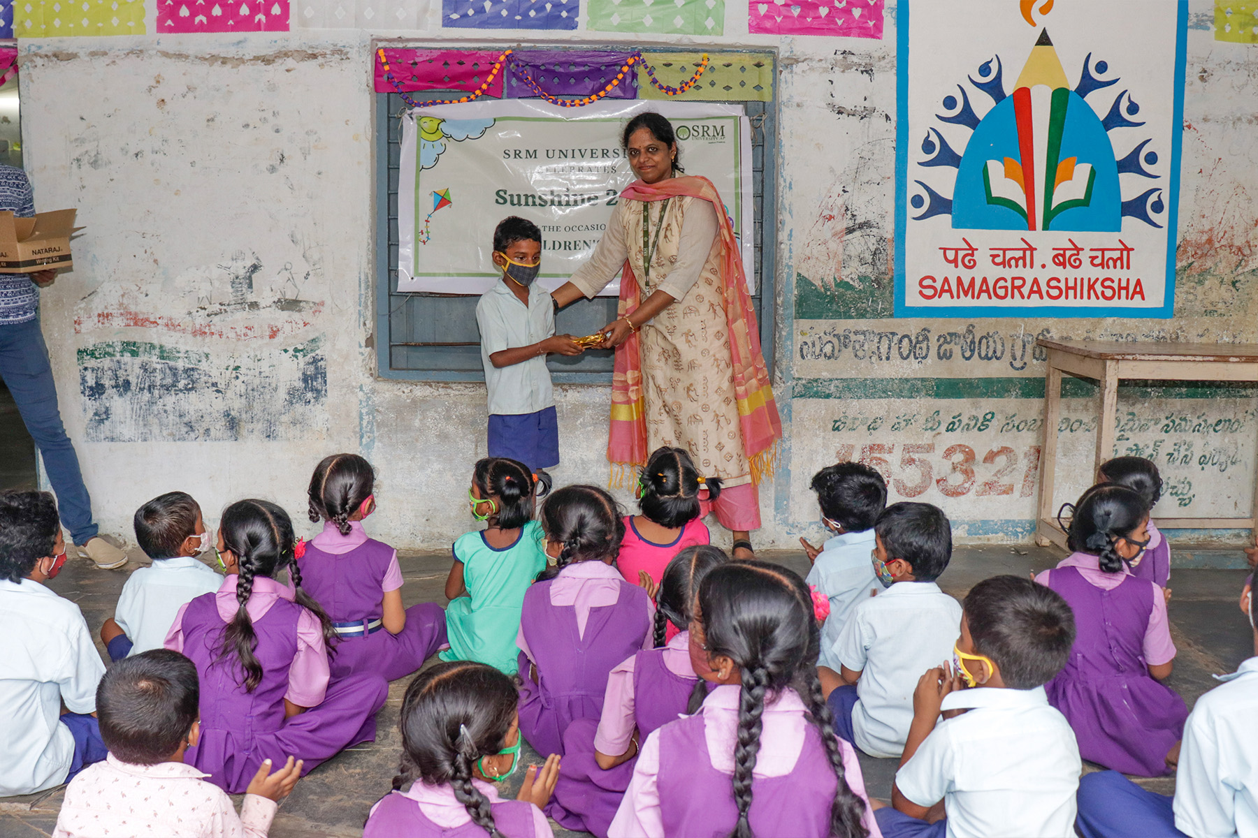 Children’s Day celebrations were held at Nirukonda and Nauluru government schools from Friday to Monday under the auspices of the Student Affairs department at SRM University-AP. The programme named SRM Sunshine, organised various games and competitions for students from classes one to ten and distributed prizes to winners. The essay writing, drawing, running, skipping and musical chair competitions focused on children and their enjoyment contributing to their cognitive development.