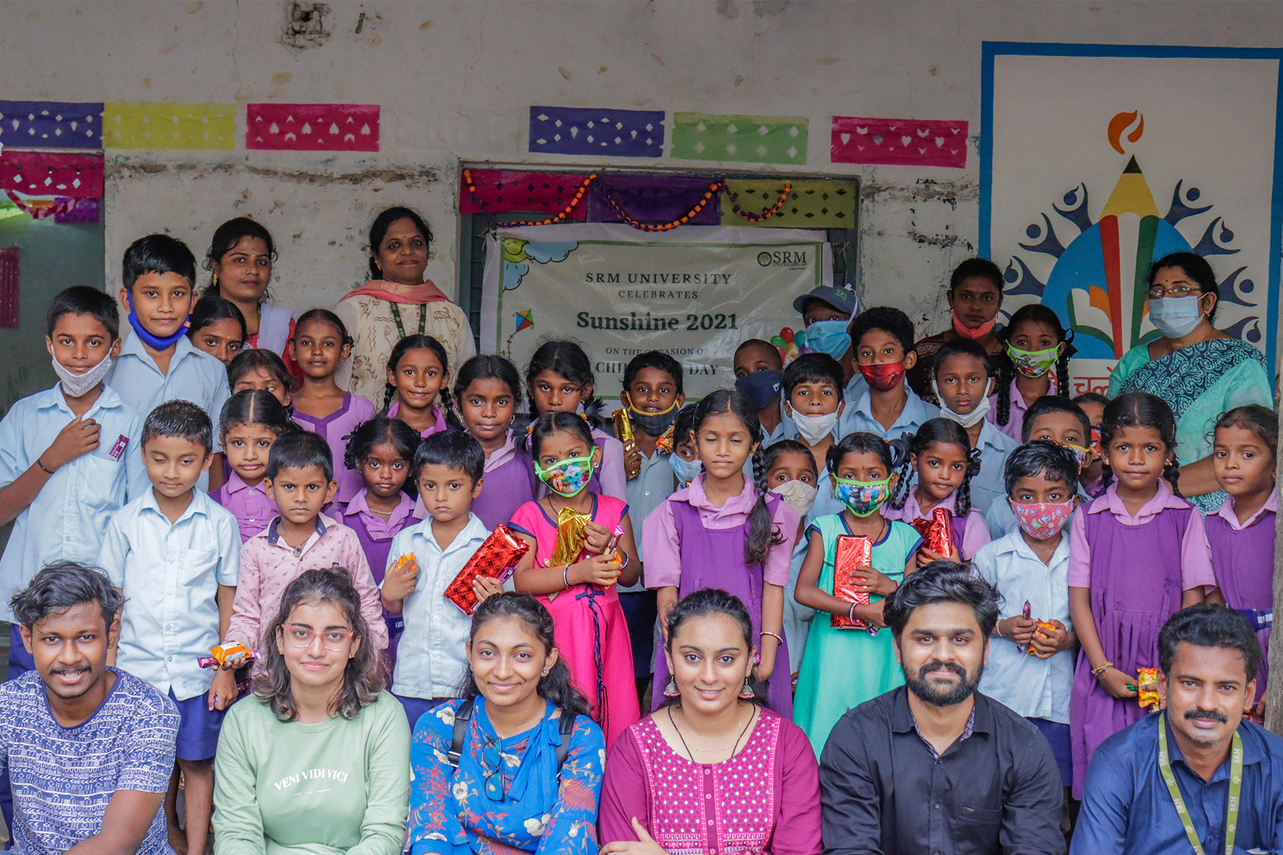 Students of SRM University-AP mingled with the children involving them in various games. The tiny tots of Preschool and Pre-primary celebrated the day with much joy and enthusiasm. The celebrations began on Friday, followed by a variety of fun-filled activities and games planned by the Sunshine team. Children were given chocolates and gifts like crayons, pencils etc. as a token of appreciation. The event was attended by Ms Revathi Balakrishnan, Assistant Director – Student Affairs; Dr Abdul Mohimin, Assistant Director – Physical Education and Mr Narendra Babu, Manager – Student Affairs.