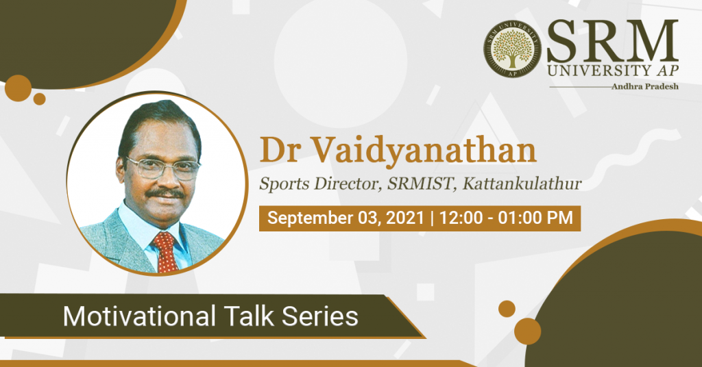 In the next chapter of Freshmen Orientation Programme-2021, SRM University-AP takes the initiative to introduce the students to the need for Sports and extracurricular activities. Dr K Vaithianathan, Director-Sports, SRM Institute of Science & Technology, Chennai, will interact with students on Friday, September 03, 2021, at 12 noon.