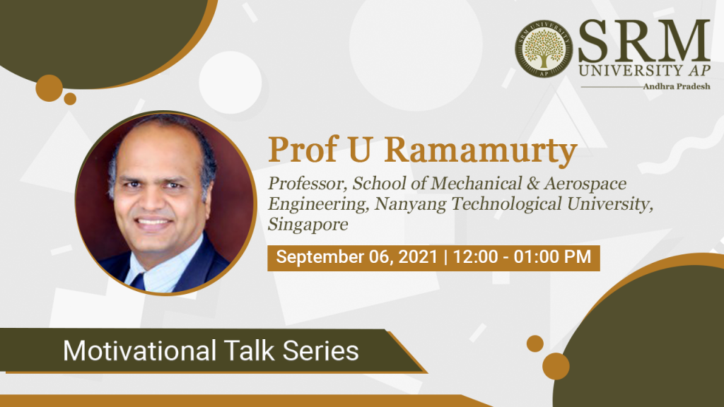 Freshmen Orientation Programme-2021 welcomes Professor Upadrasta Ramamurty, School of Mechanical & Aerospace Engineering, Nanyang Technological University, Singapore, to deliver a talk on September 06, 2021, at 12 noon.