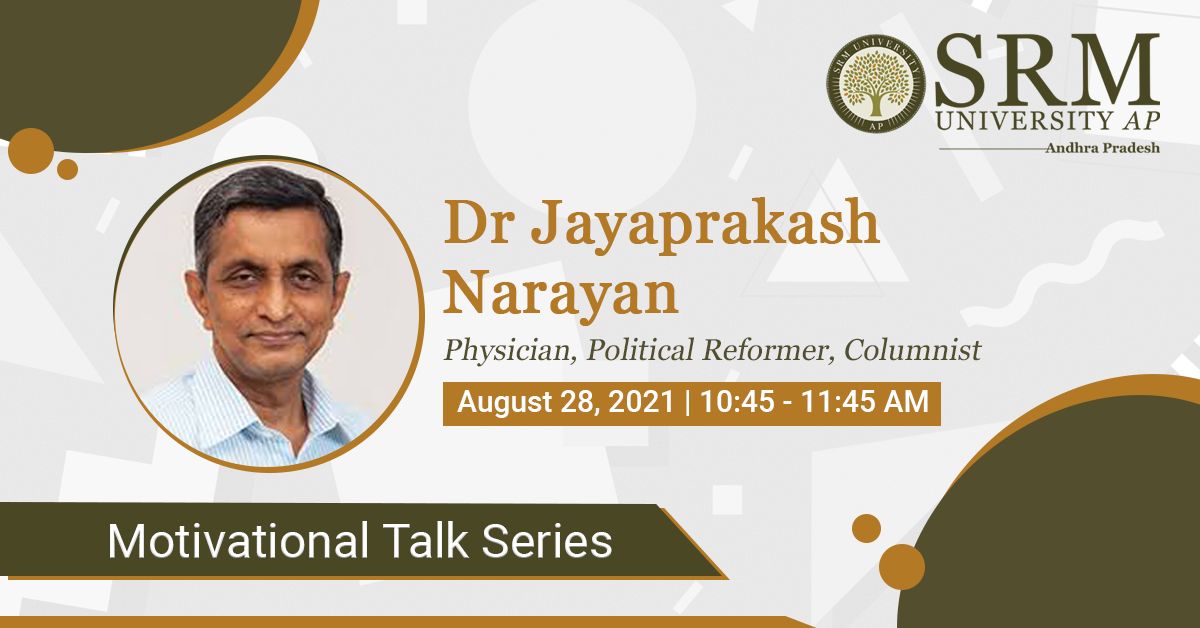 In continuation with the Freshmen Orientation Programme 2021, SRM University-AP, Andhra Pradesh, has requested Dr Jaya Prakash Narayan, celebrated physician, political reformer, and columnist, to address the Freshmen 2021 on August 28, 2021, at 10.45 am.