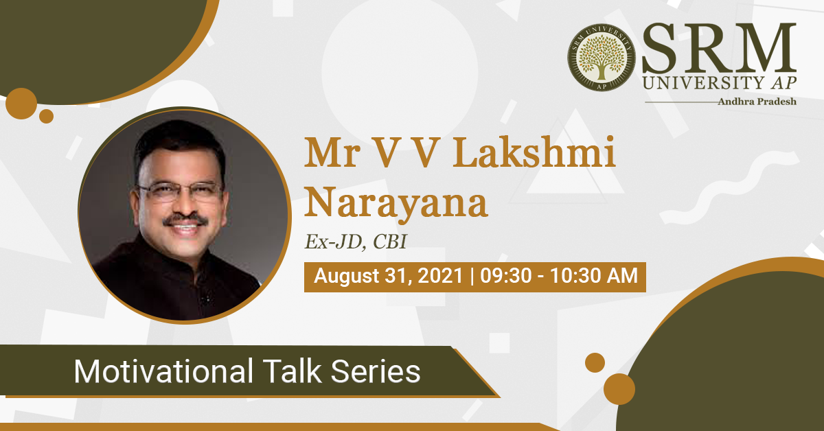 Progressing with the Freshmen Orientation Programme-2021, where students learn about the university systems and processes, SRM University-AP has also made arrangements to introduce them to eminent people from various spheres of society. The university is honoured to have Mr Vasagiri Venkata Lakshminarayana, Former Additional Director General of Police in Mumbai, Maharashtra, on August 31, 2021, at 09.30 am for an interesting discussion.