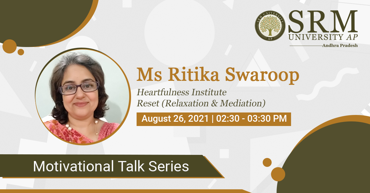 After the grand opening of the Freshmen Orientation Programme-2021, it is now time to move forward. SRM University believes in holistic education that is not confined inside the classrooms. The university believes that it is equally important to take care of one’s mental and emotional health along with academic activities. Therefore, beyond the motivational lectures, SRM University-AP has organized “Reset, Refresh and Recharge” in collaboration with Heartfulness Institute to help students understand the importance of internal health. The first session will be conducted on August 26, 2021, at 2.30 pm with Ms Rikita Swaroop, explaining the importance of “Reset (Relaxation & Meditation)”.