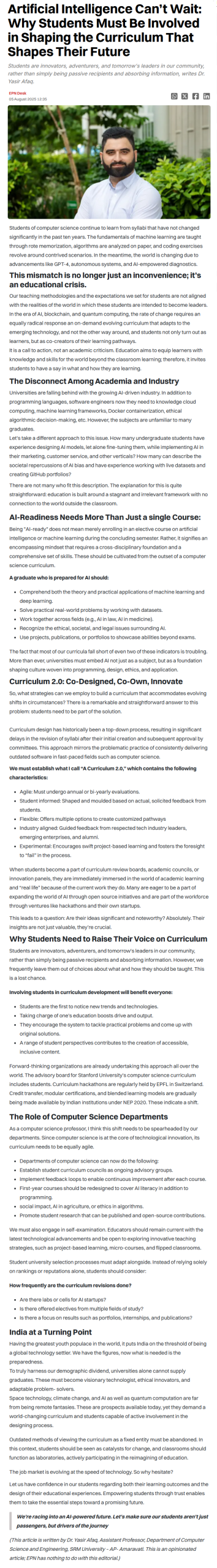 Artificial Intelligence Can’t Wait: Why Students Must Be Involved in Shaping the Curriculum That Shapes Their Future