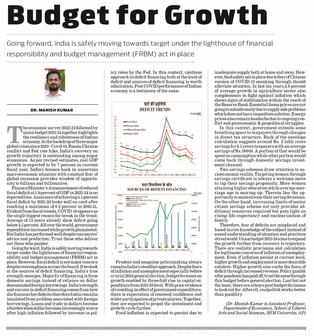 Budget for Growth; Article by Dr Manish Kumar published in Rising Kashmir