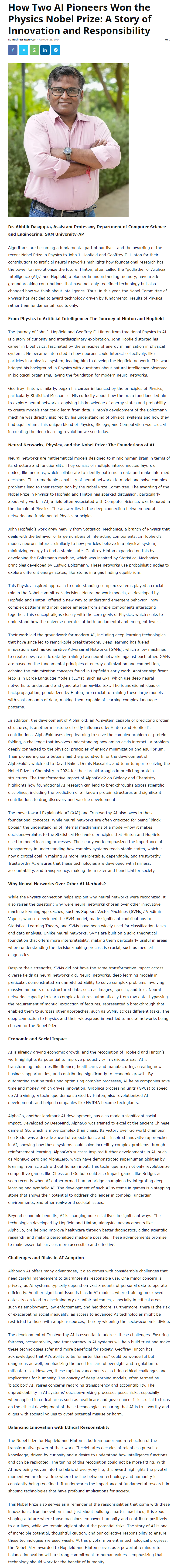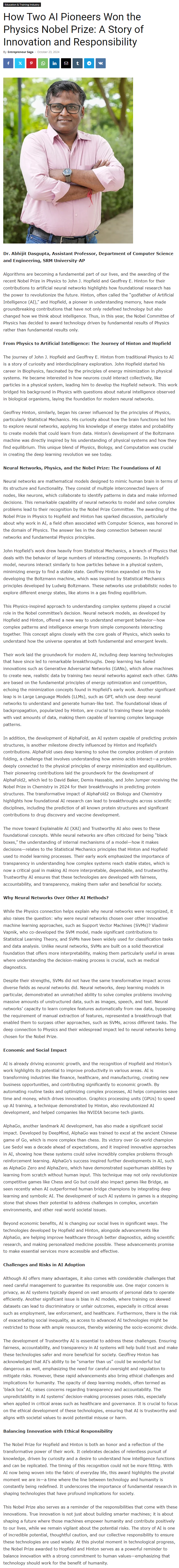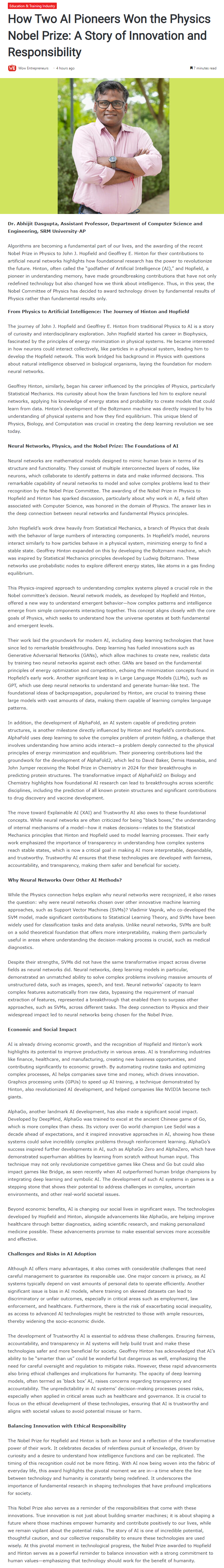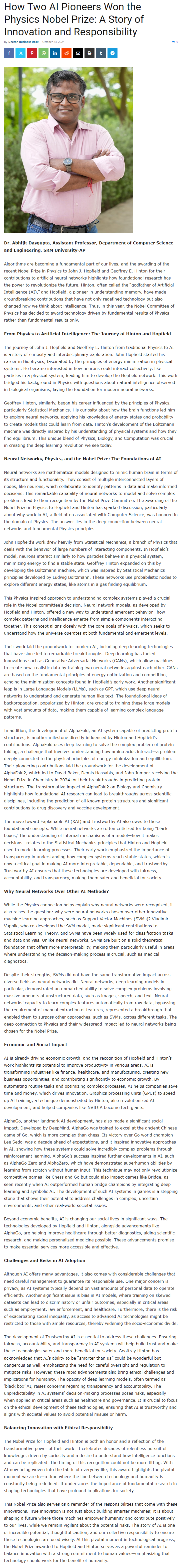 How Two AI Pioneers Won the Physics Nobel Prize: A Story of Innovation and Responsibility