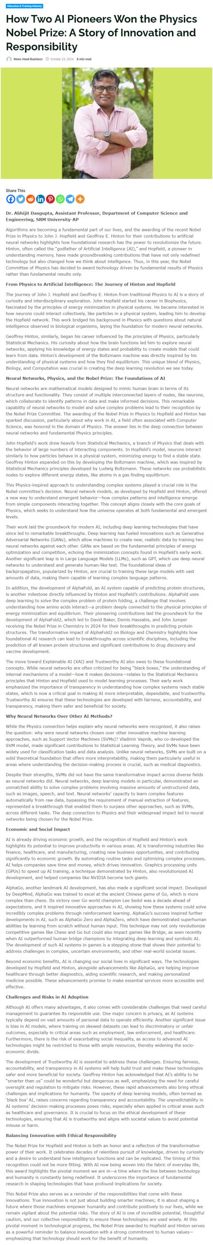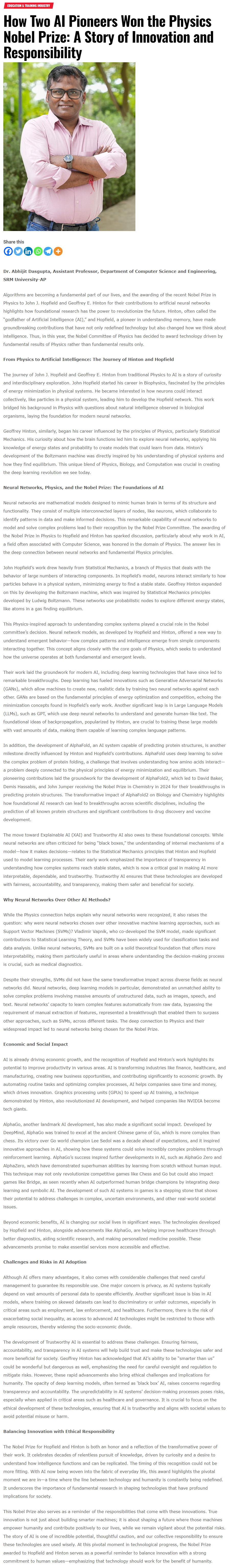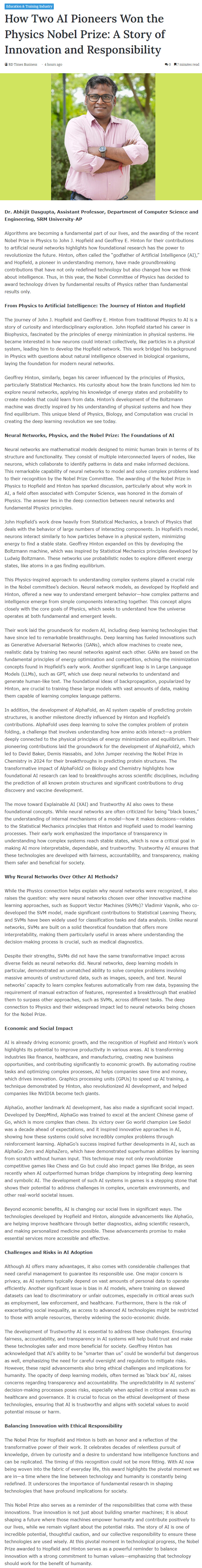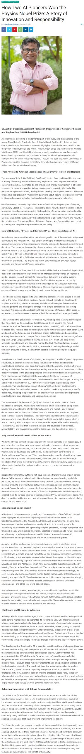 How Two AI Pioneers Won the Physics Nobel Prize: A Story of Innovation and Responsibility