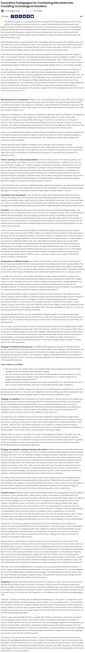 Innovative Pedagogies For Translating Education Into Providing Technological Solutions