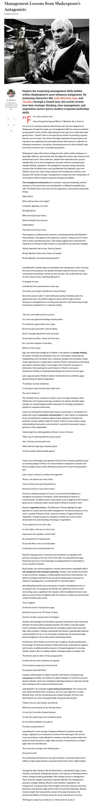 Management Lessons from Shakespeare’s Antagonists