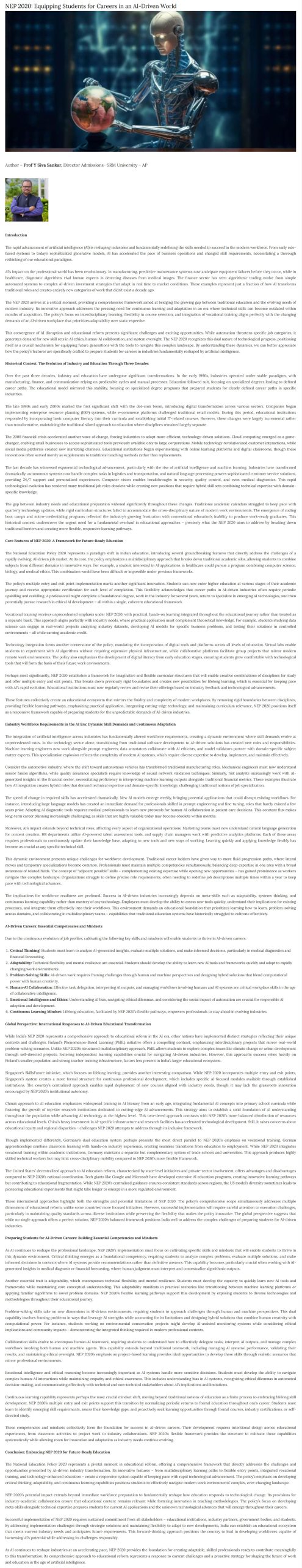 NEP 2020; Equipping Students for Careers in AI Driven World