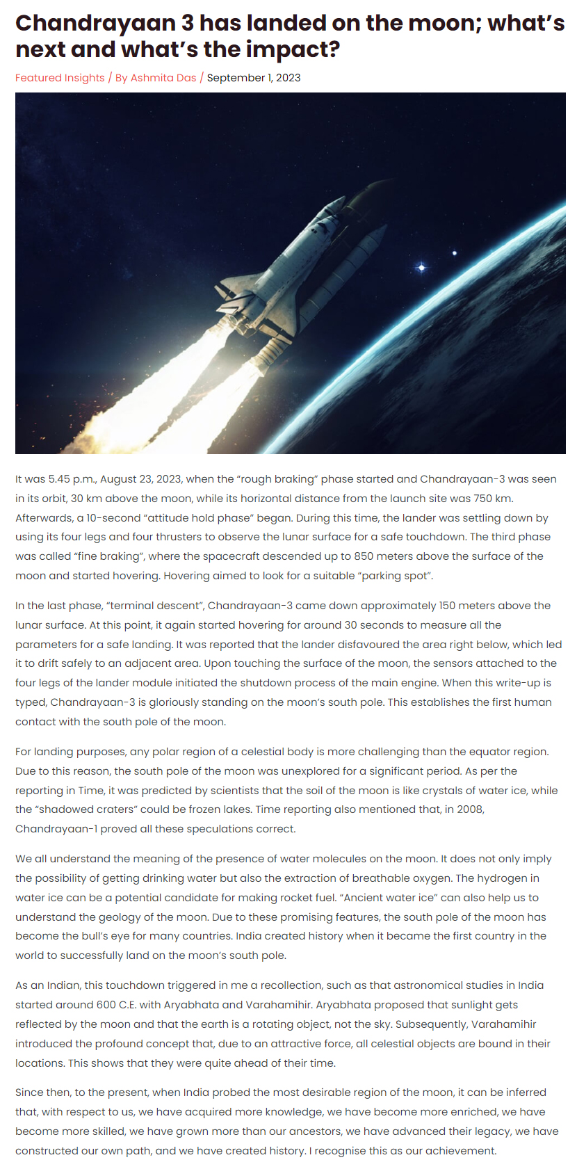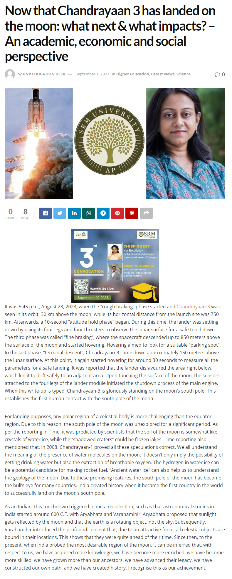 Now that Chandrayaan 3 has landed on the moon: what next & what impacts? – An academic, economic and social perspective
