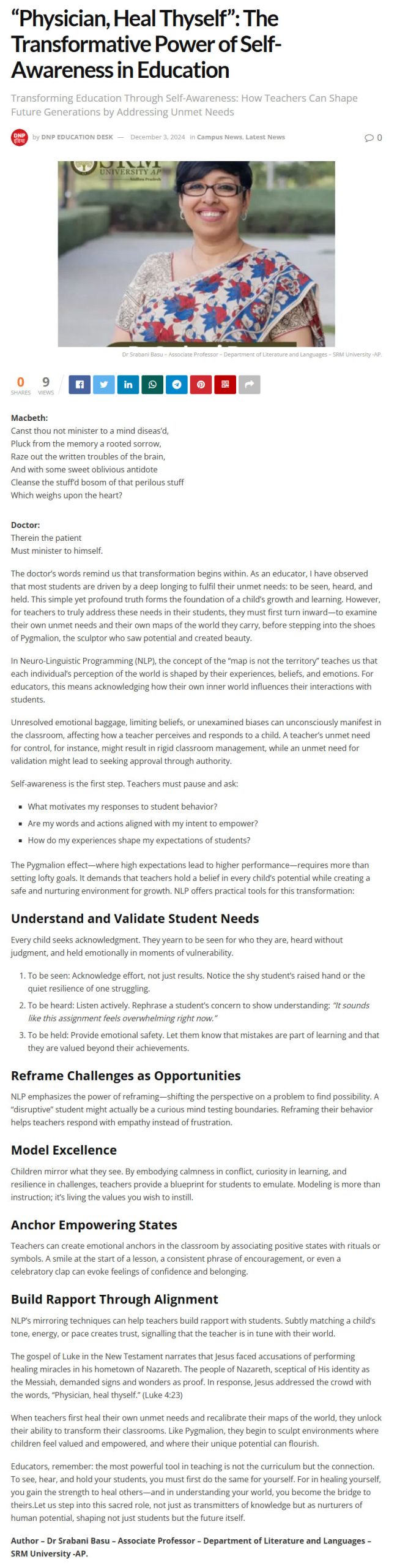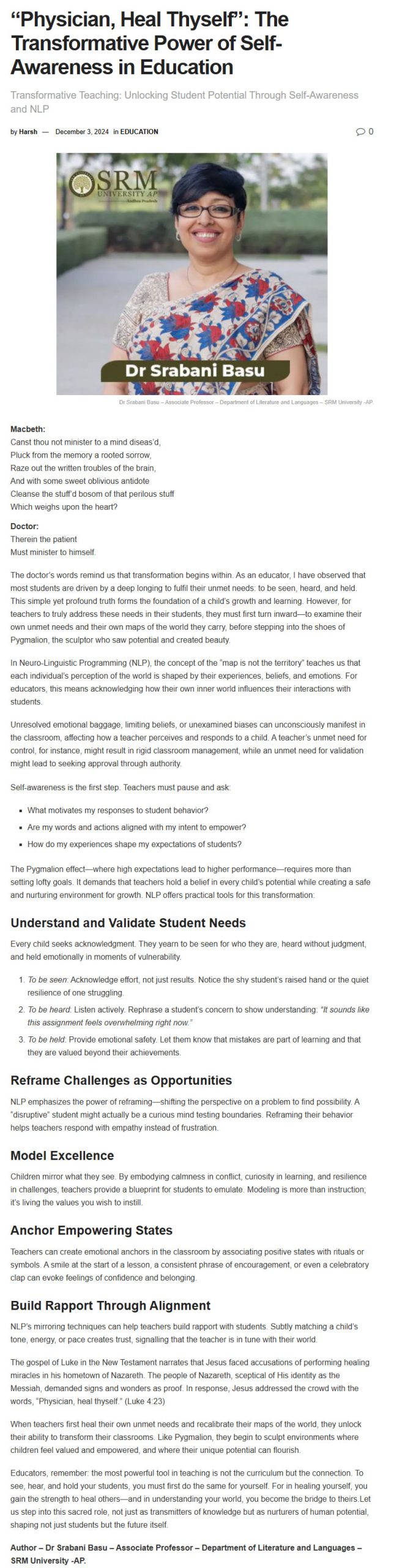 “Physician, Heal Thyself”: The Transformative Power of Self-Awareness in Education