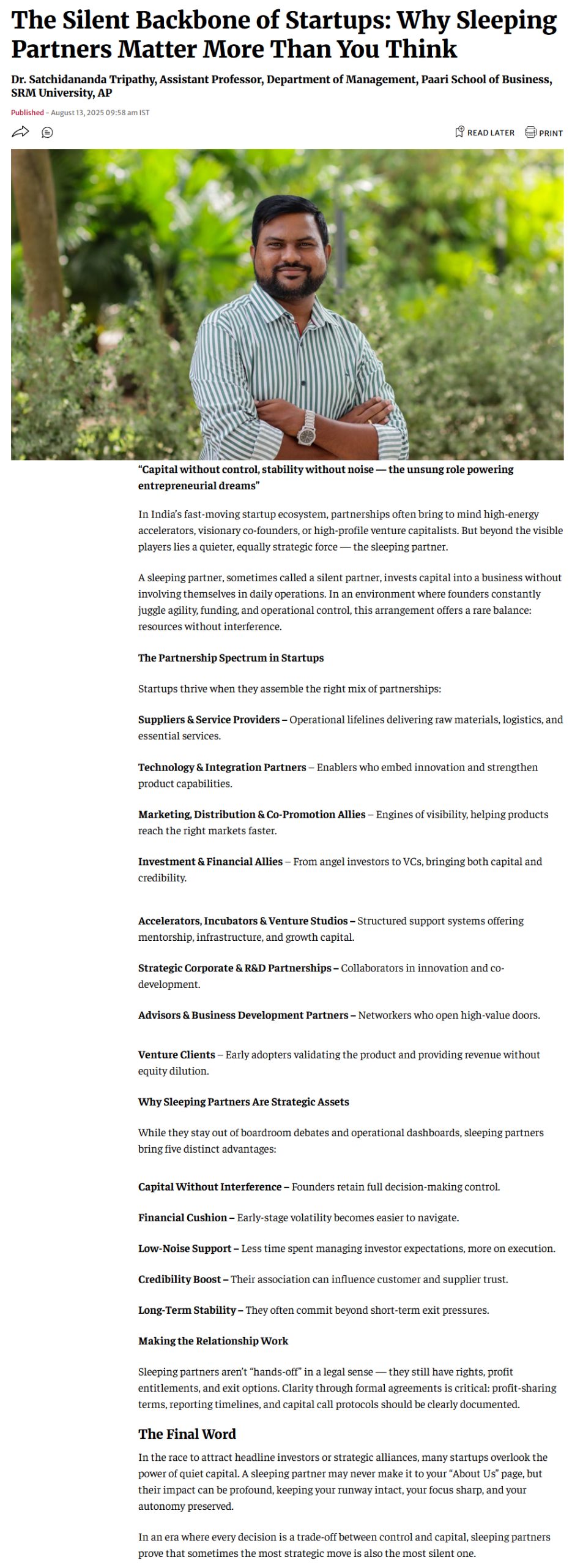 The Silent Backbone of Startups: Why Sleeping Partners Matter More Than You Think