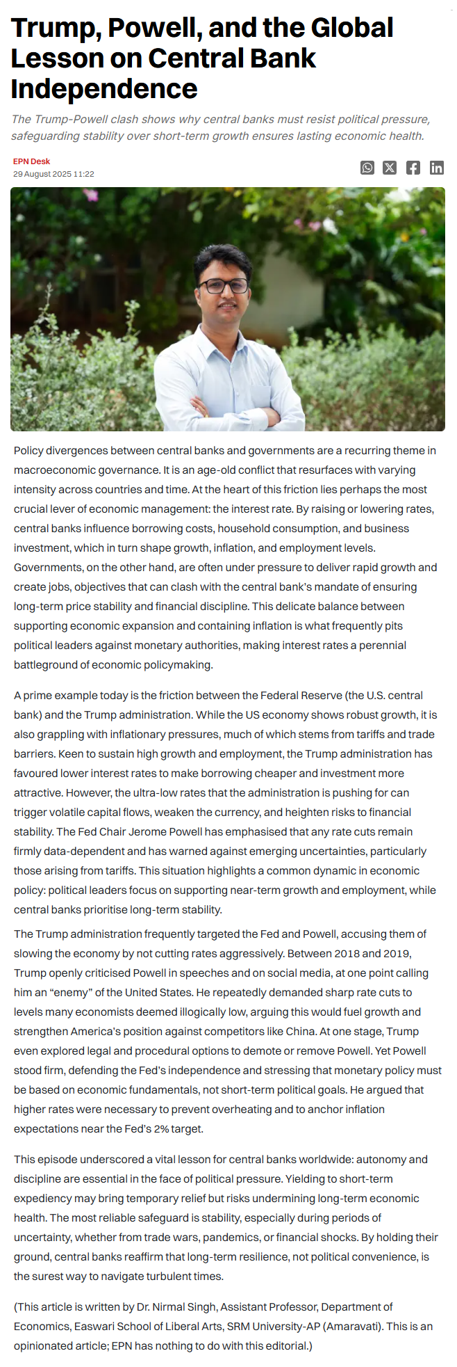 Trump, Powell, and the Global Lesson on Central Bank Independence